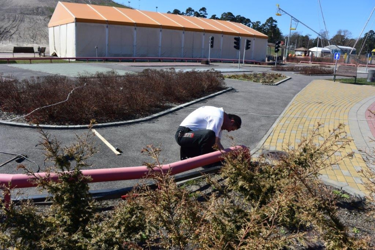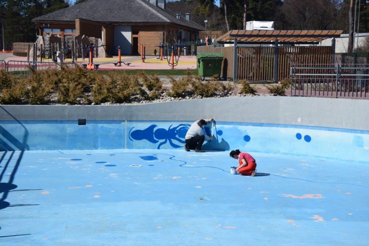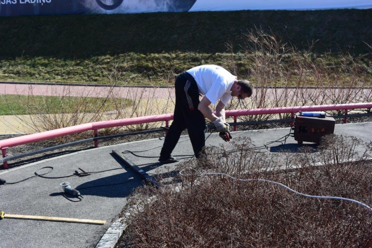В Олимпийском центре "Вентспилс" ведутся работы по уборке и ремонту. ФОТО: ОЦ ''Вентспилс''