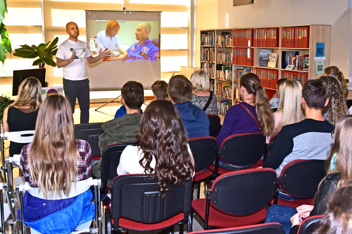 Ночь ученых в Вентспилсской библиотеке. Фото: Айвар Кестерис.