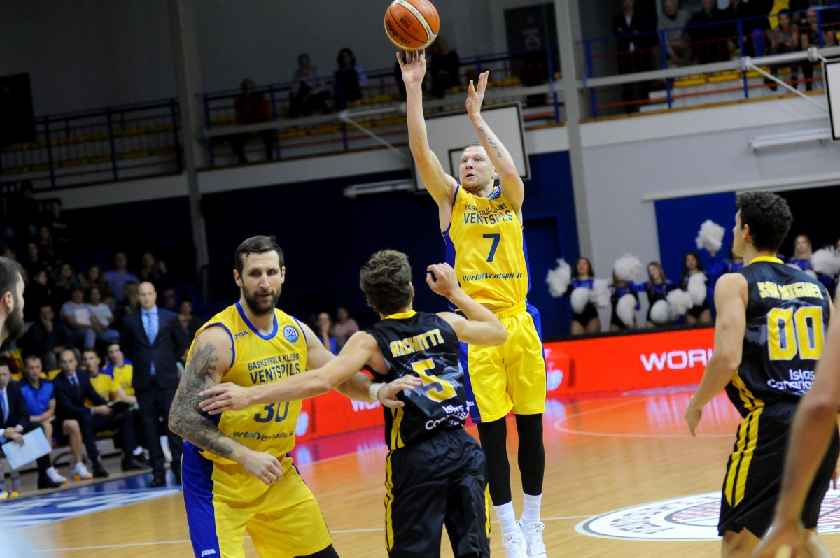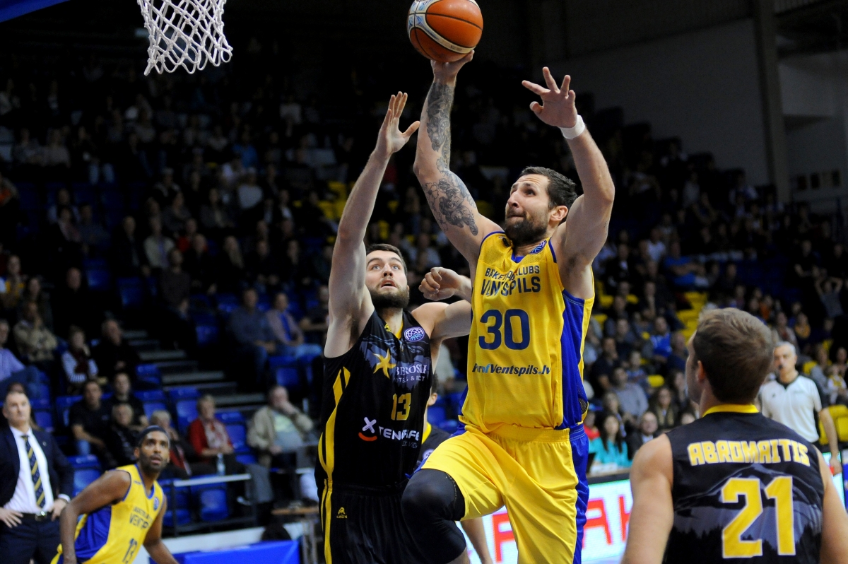 В Лиге чемпионов БК «Вентспилс» обыграл чемпиона, испанскую «Iberostar Tenerife». Фото: Юрис Гигулис.