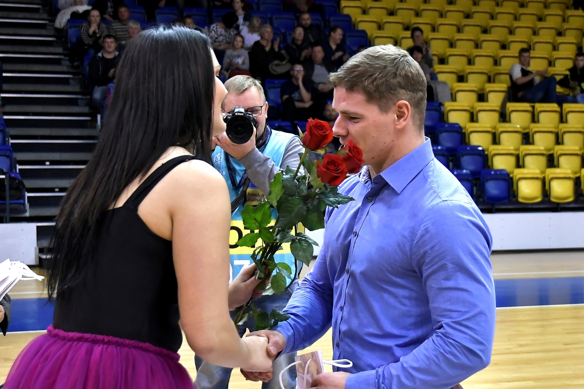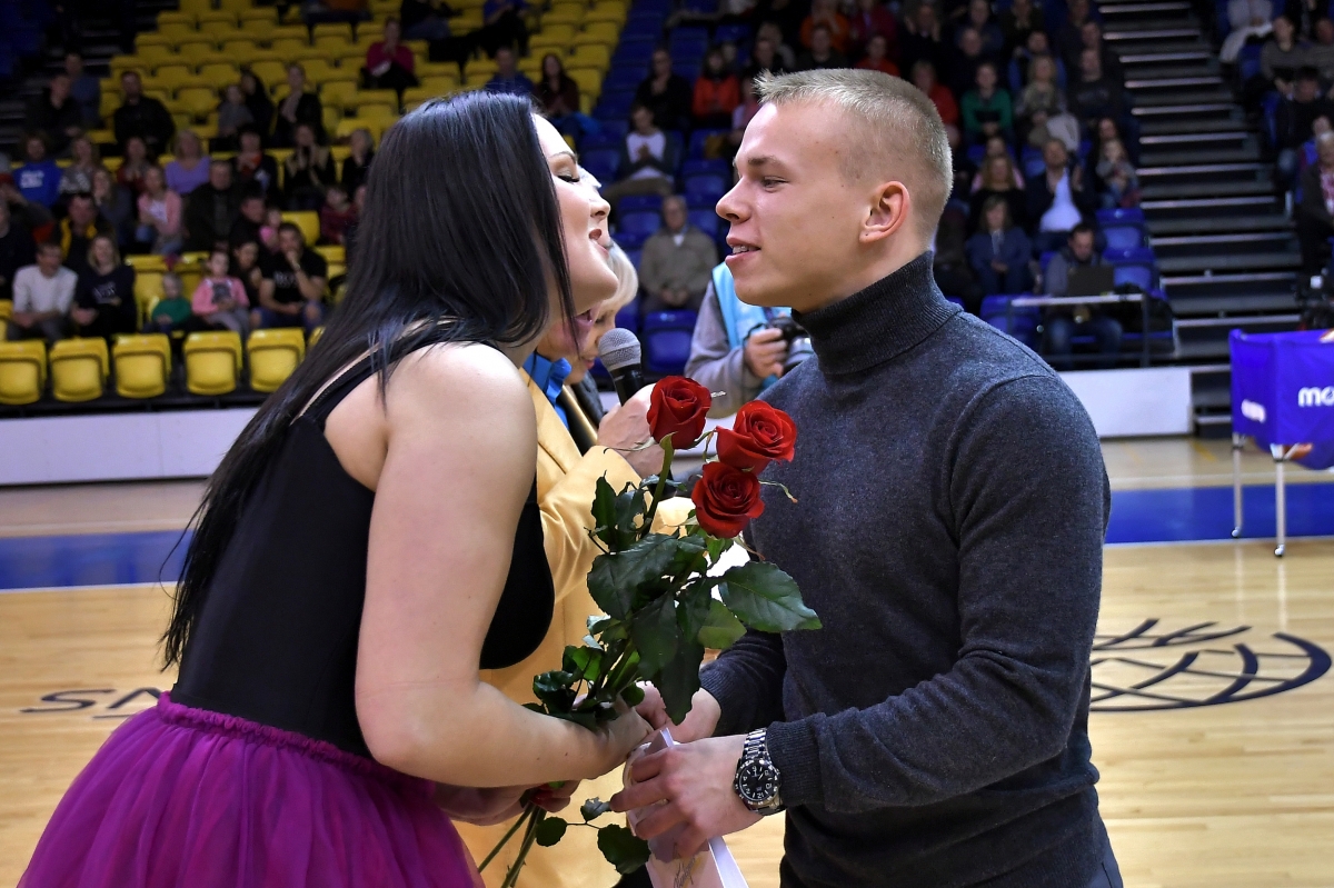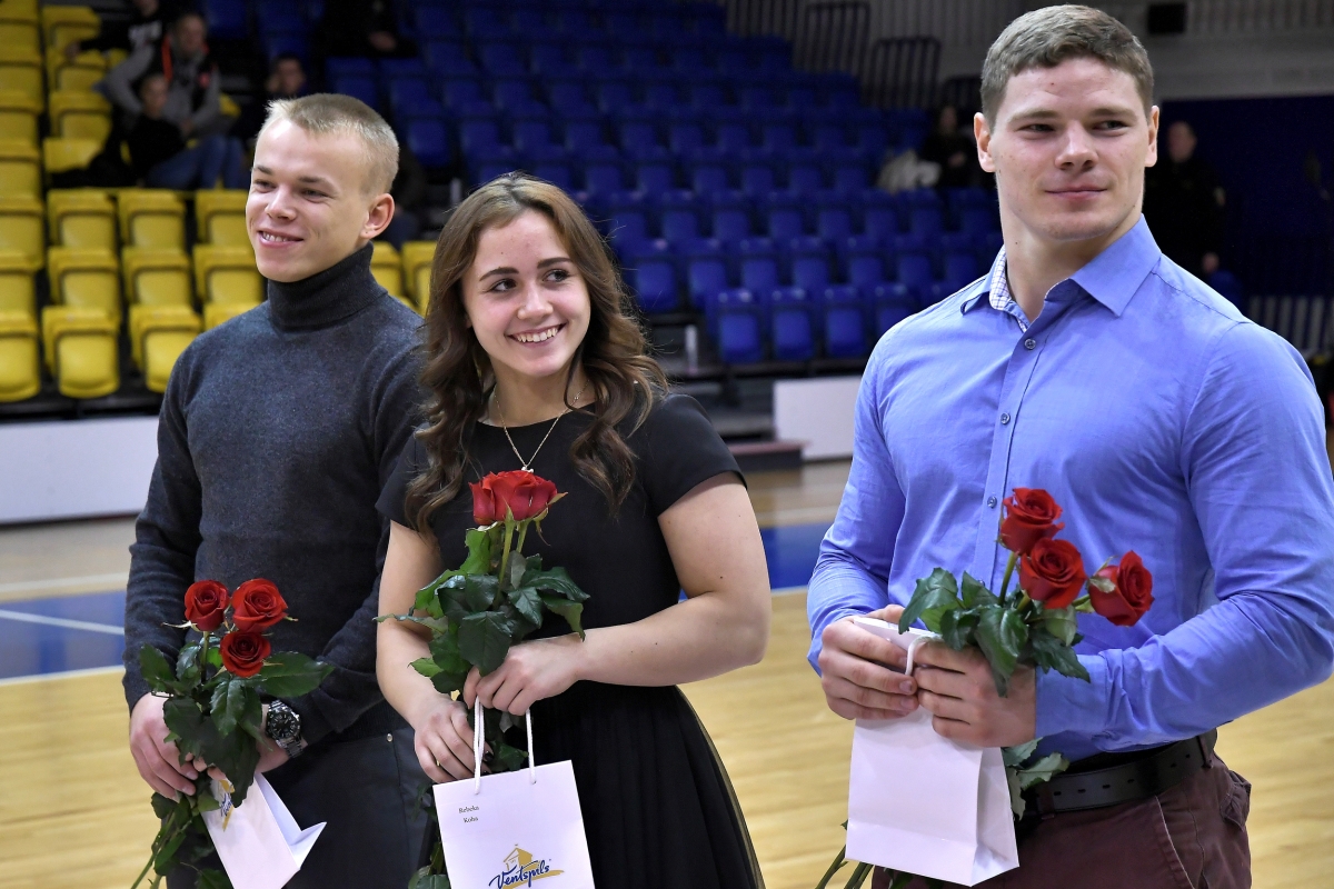 Председатель гордумы Айвар Лемберг поздравил чемпионов Европы и их тренеров. Фото: Айвар Кестерис.