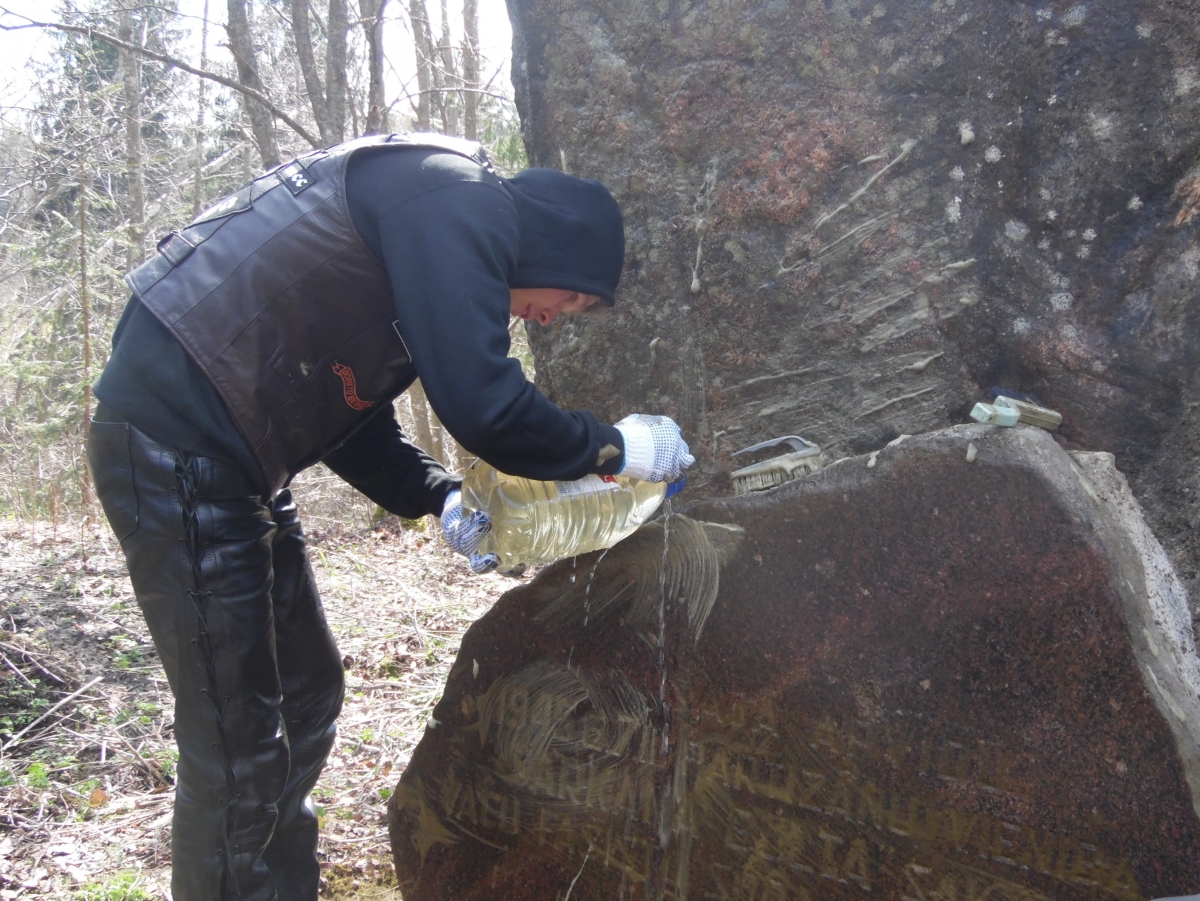 Байкеры привели в порядок памятник партизанам, боровшимся с фашизмом. Фото: Ирина Селевёрстова