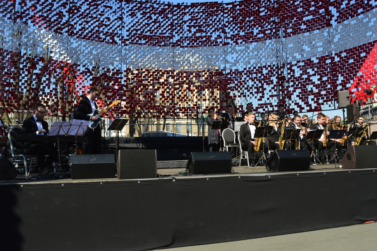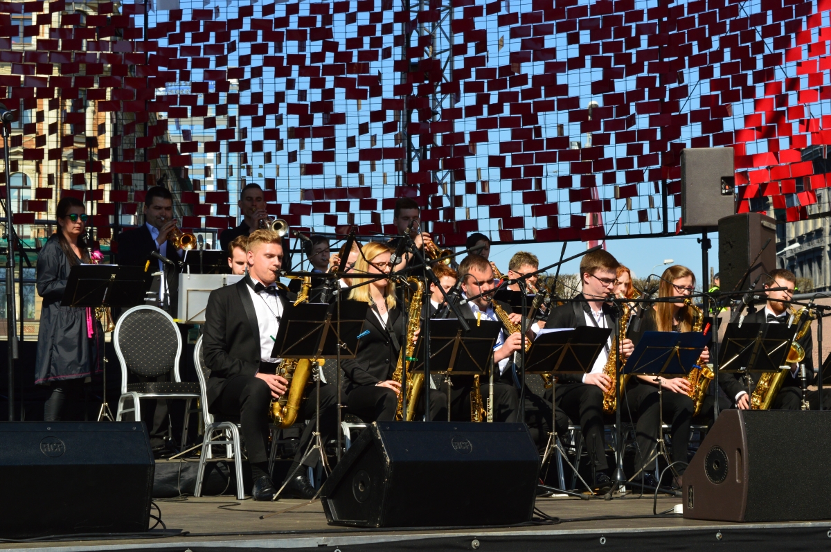 Биг-бенд играет около Памятника свободы
