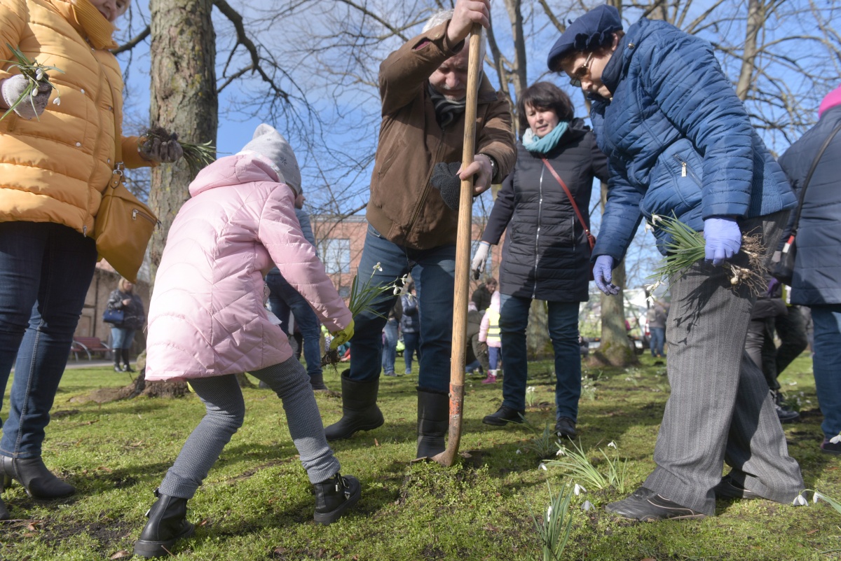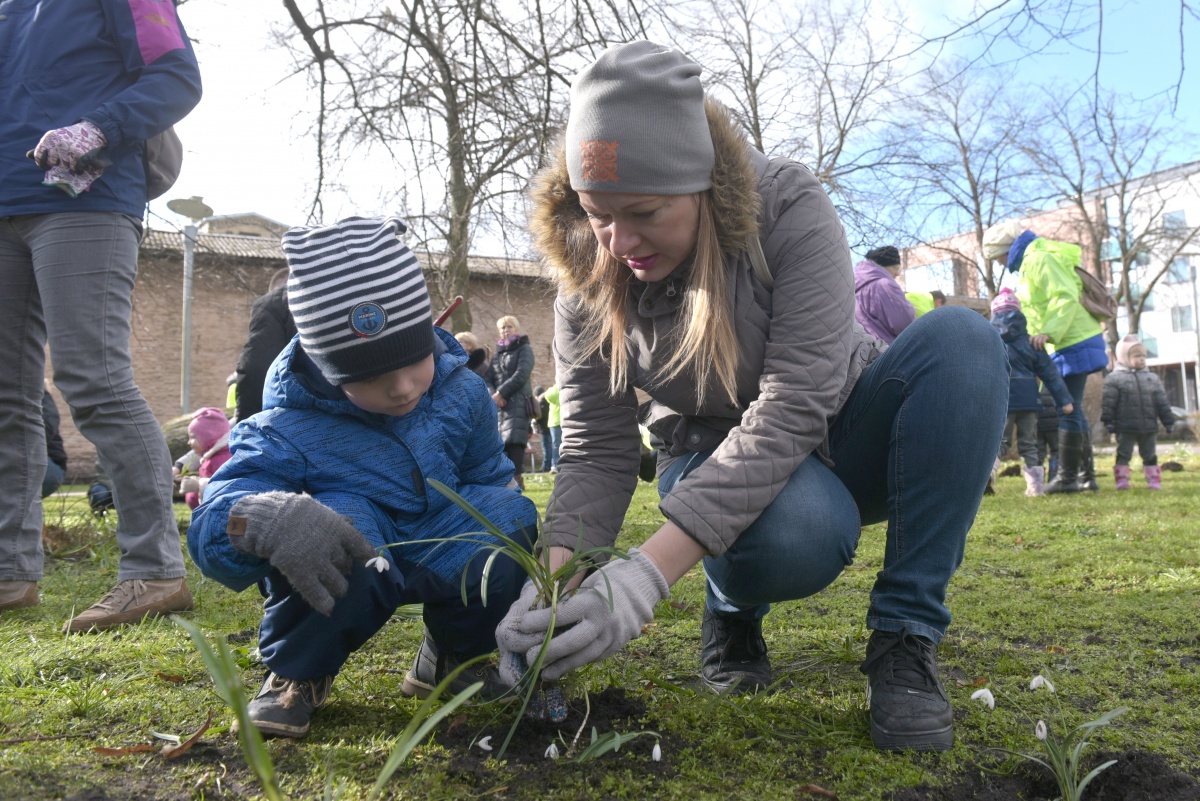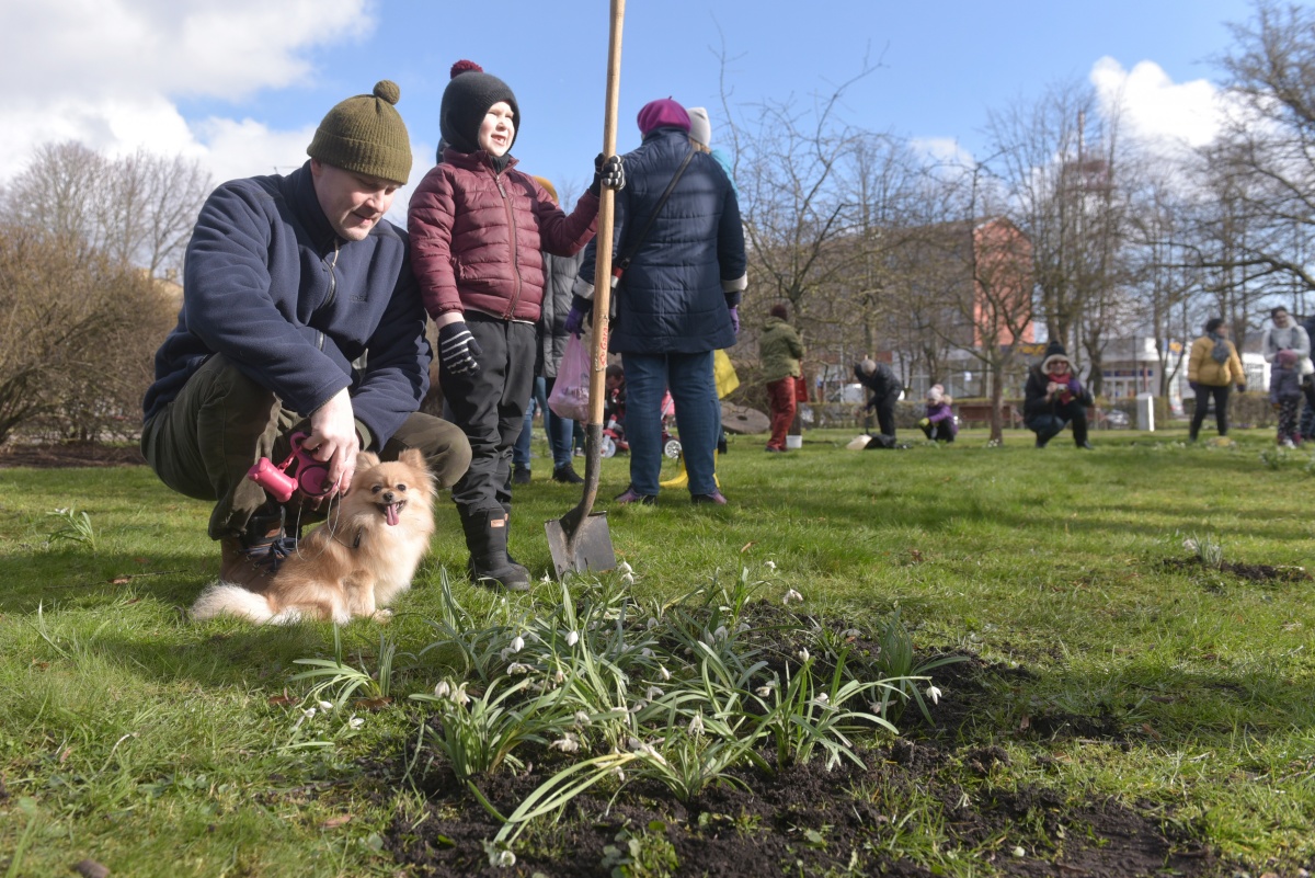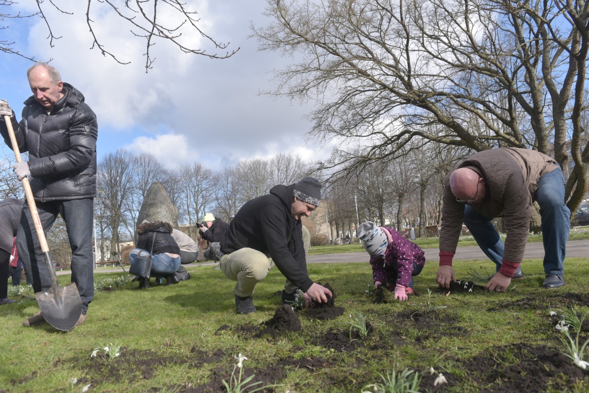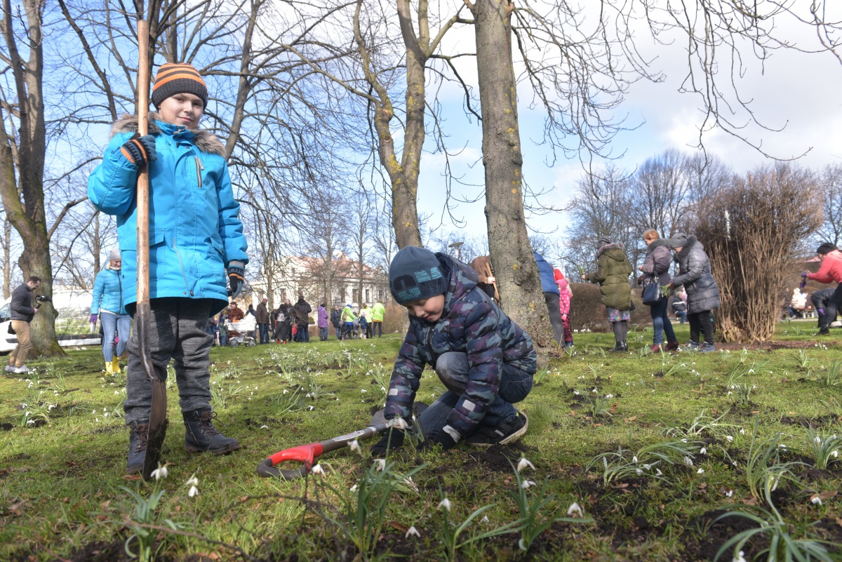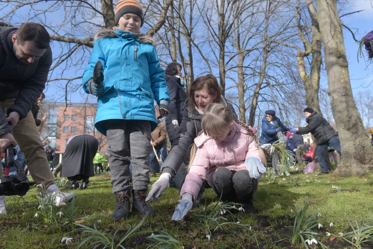 Субботник по посадке подснежников на площади Дзирнаву