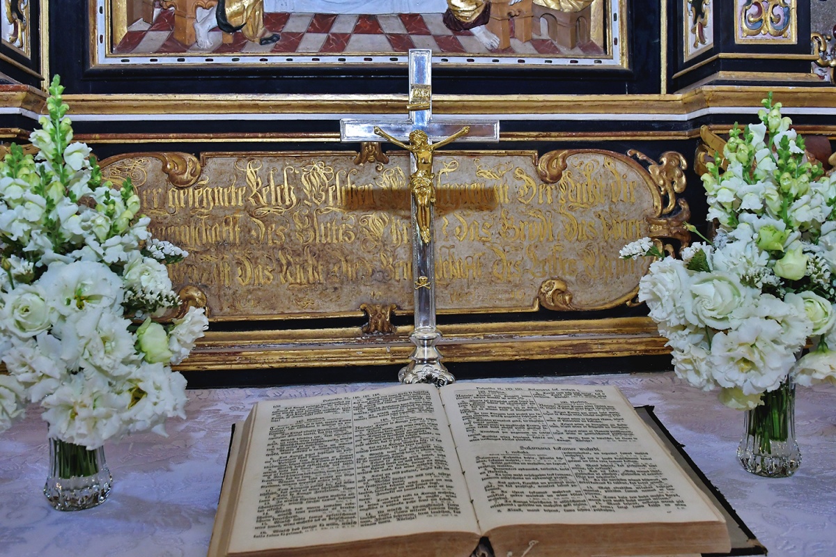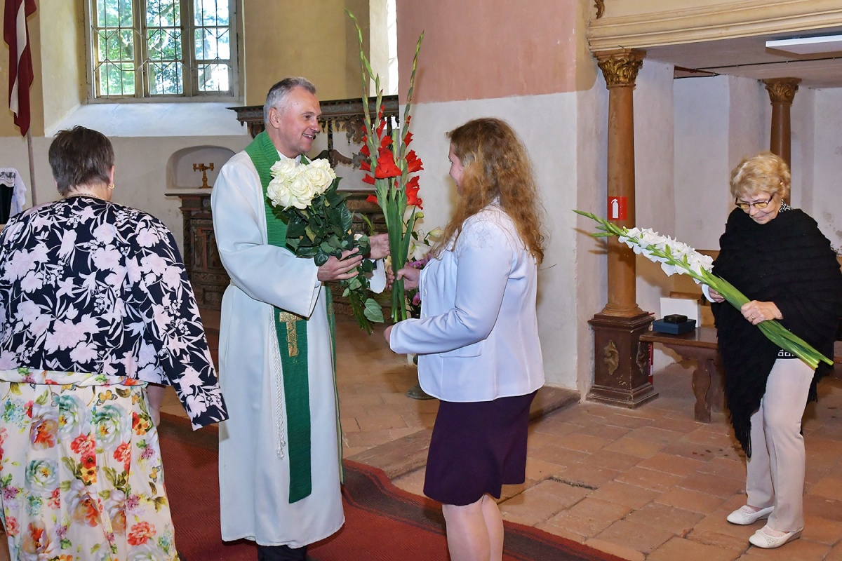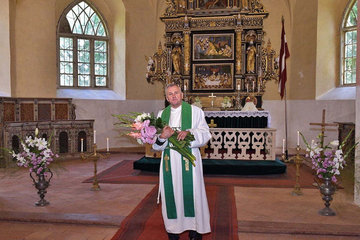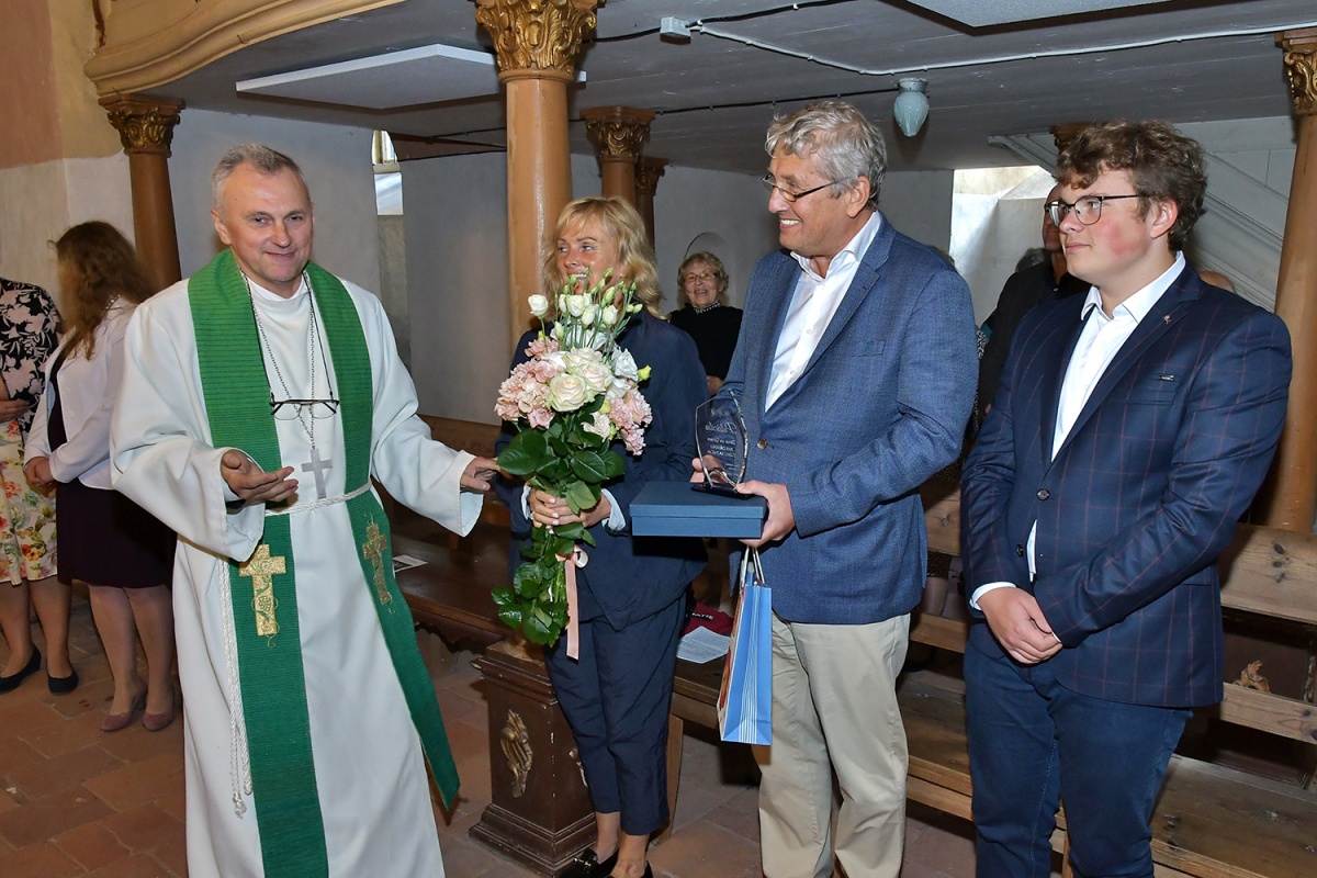 В Злекской церкви освятили подаренные меценатами Зинтой и Гиртом Штекерхофами люстру и распятие