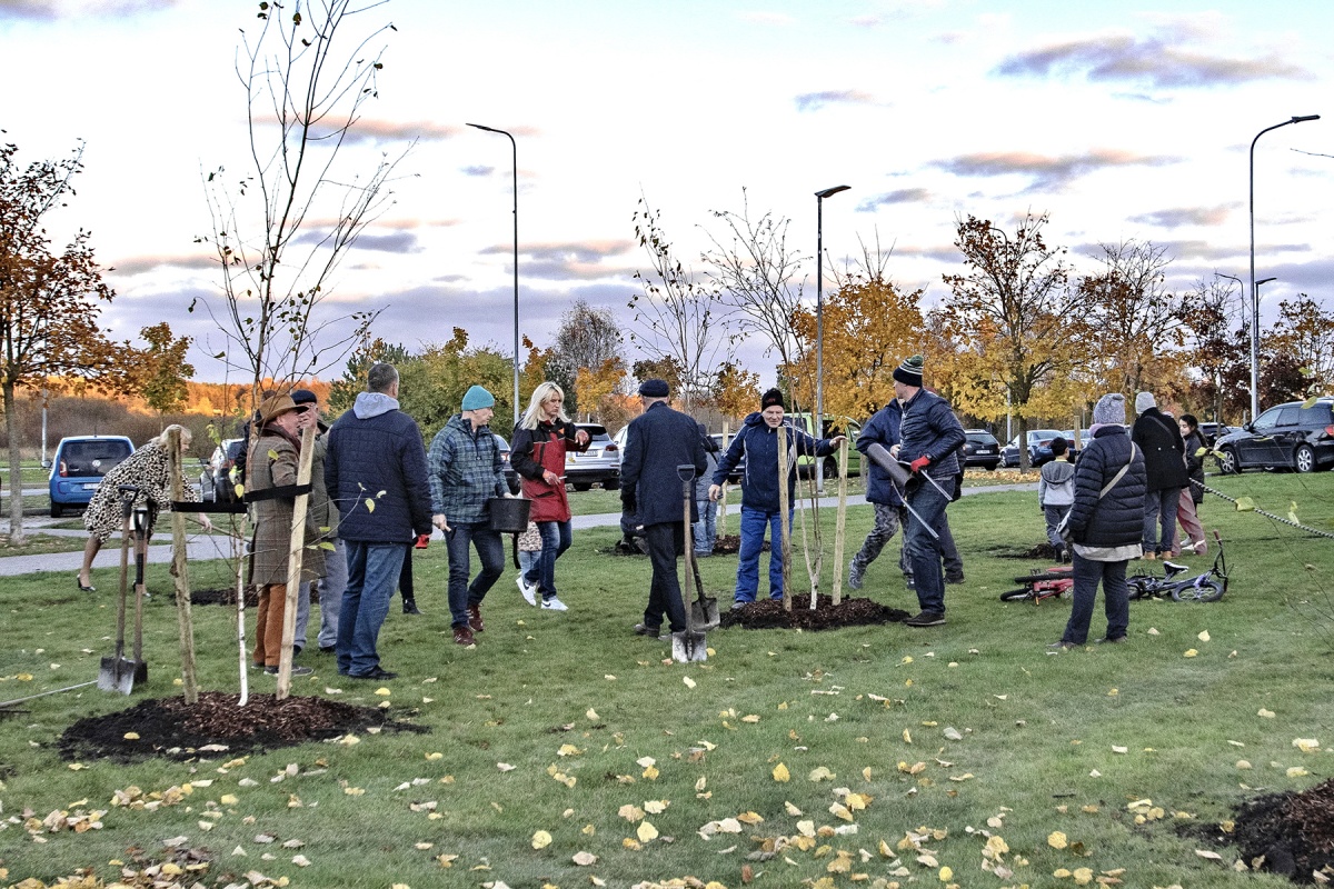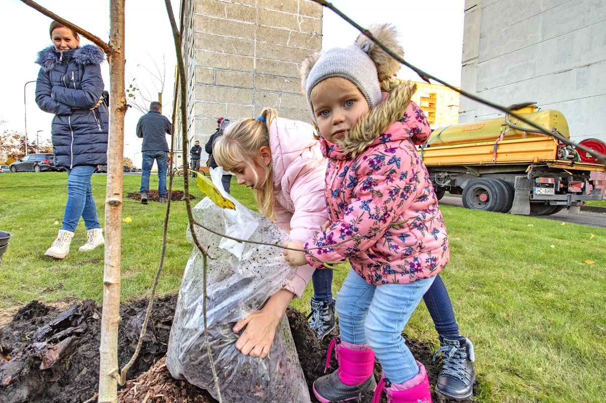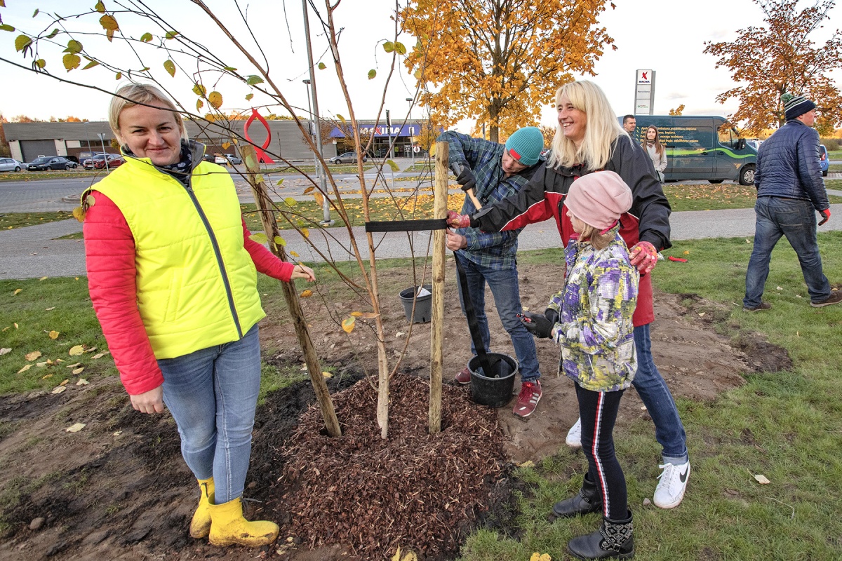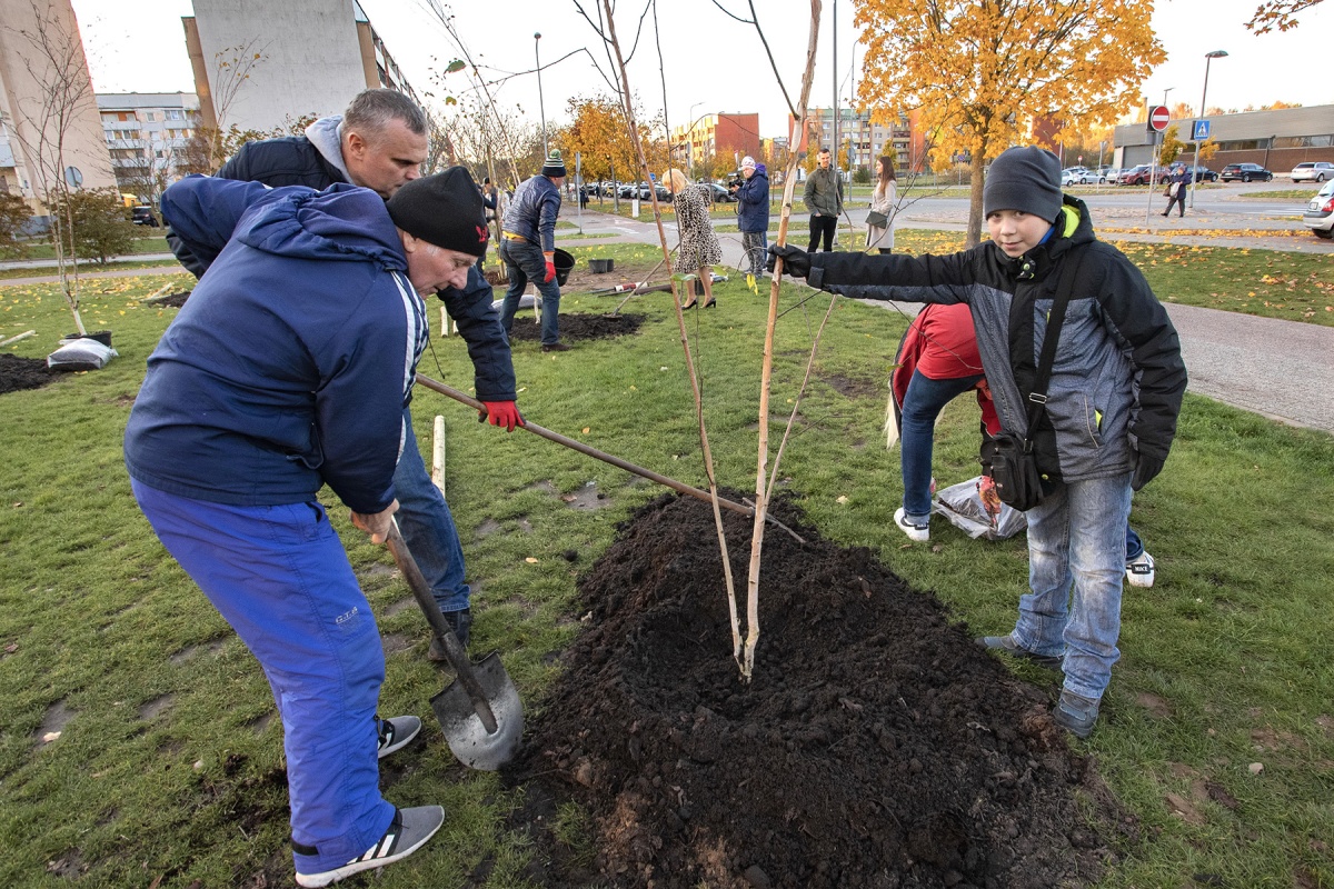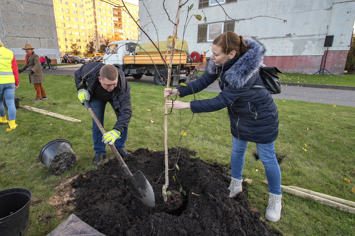 Посадка деревьев в благоустроенных дворах Парвенты