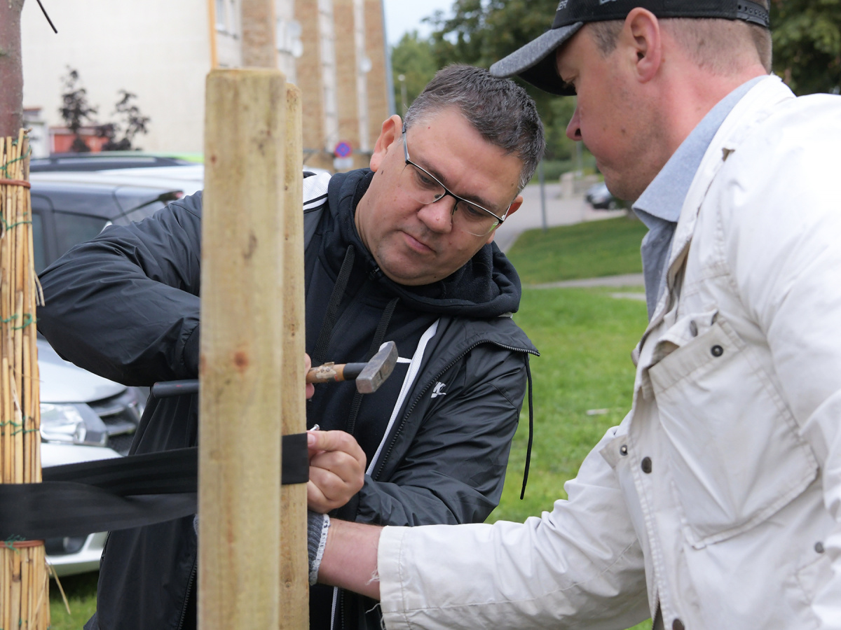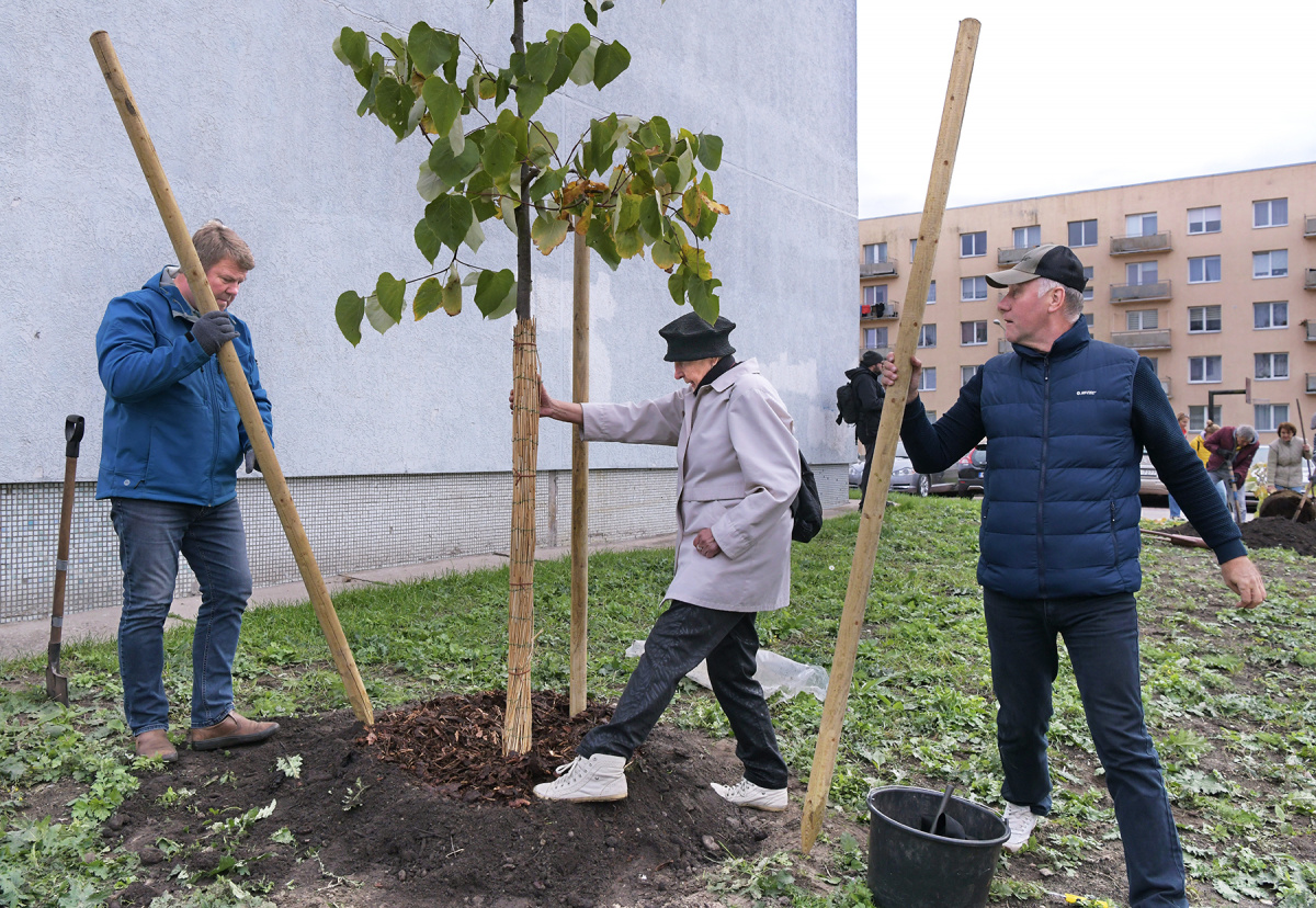 Посадка деревьев на улице Сигулдас