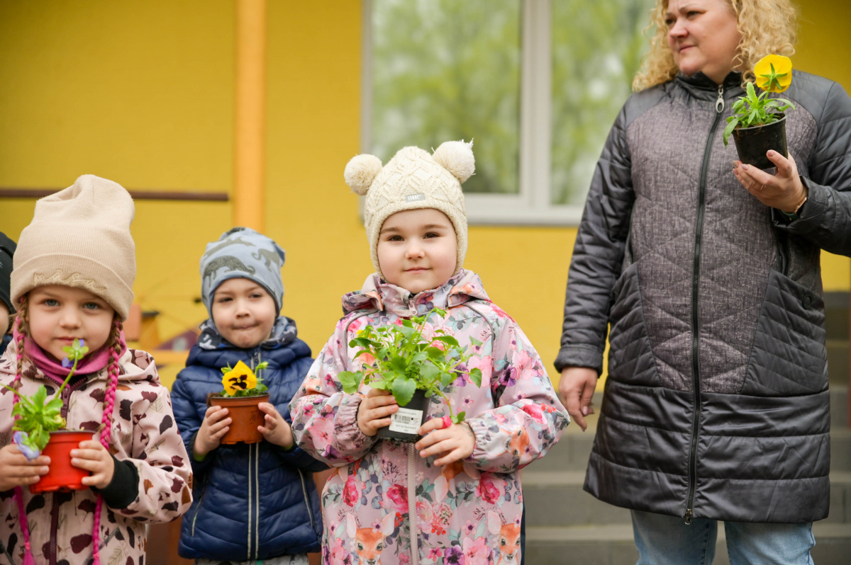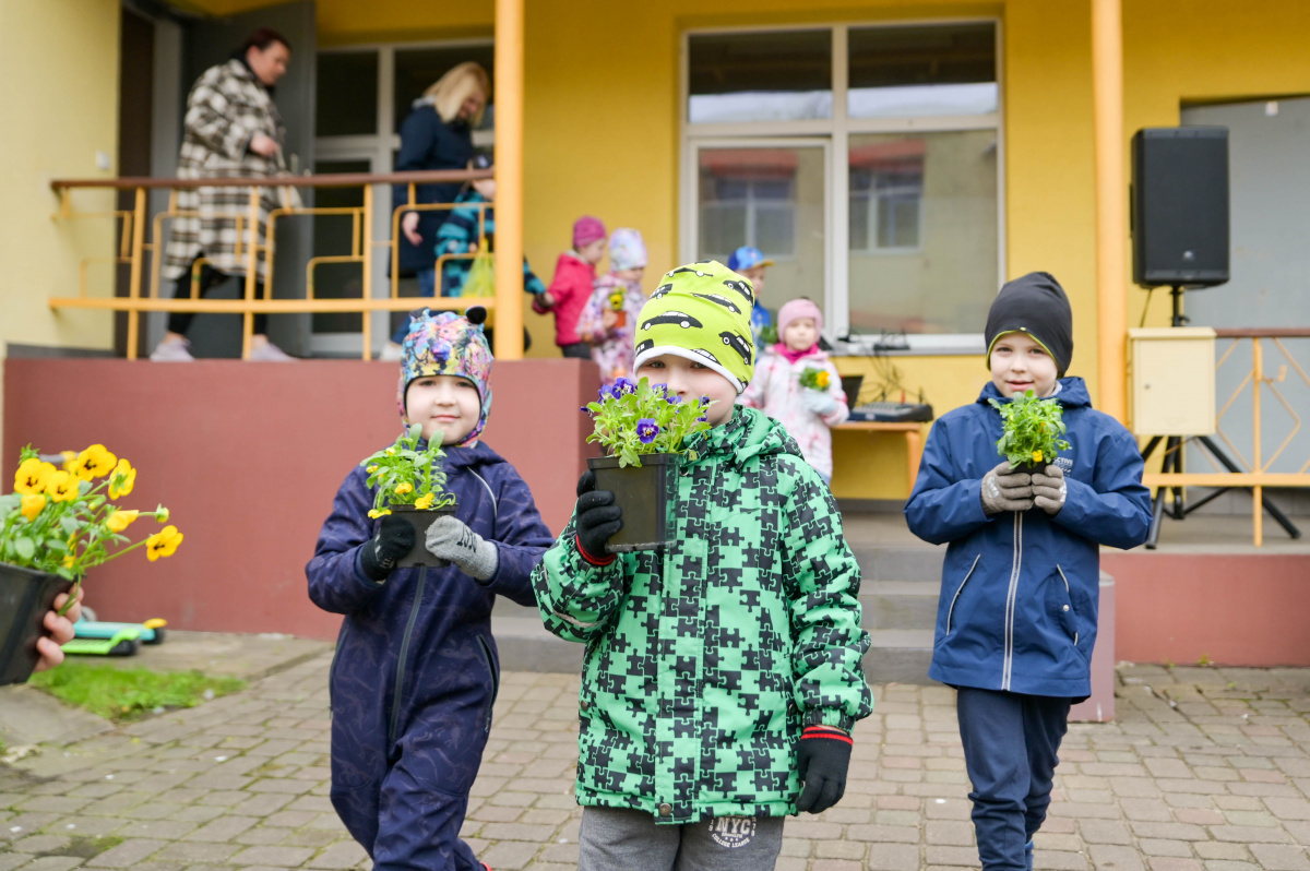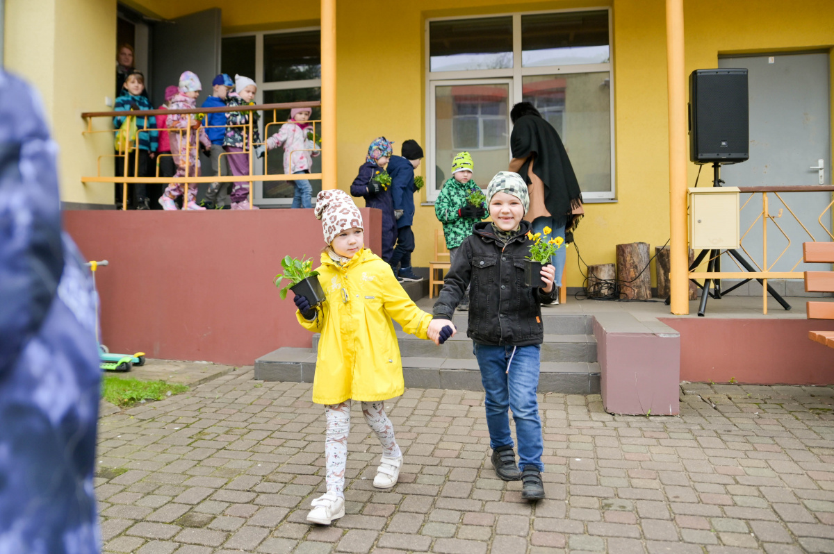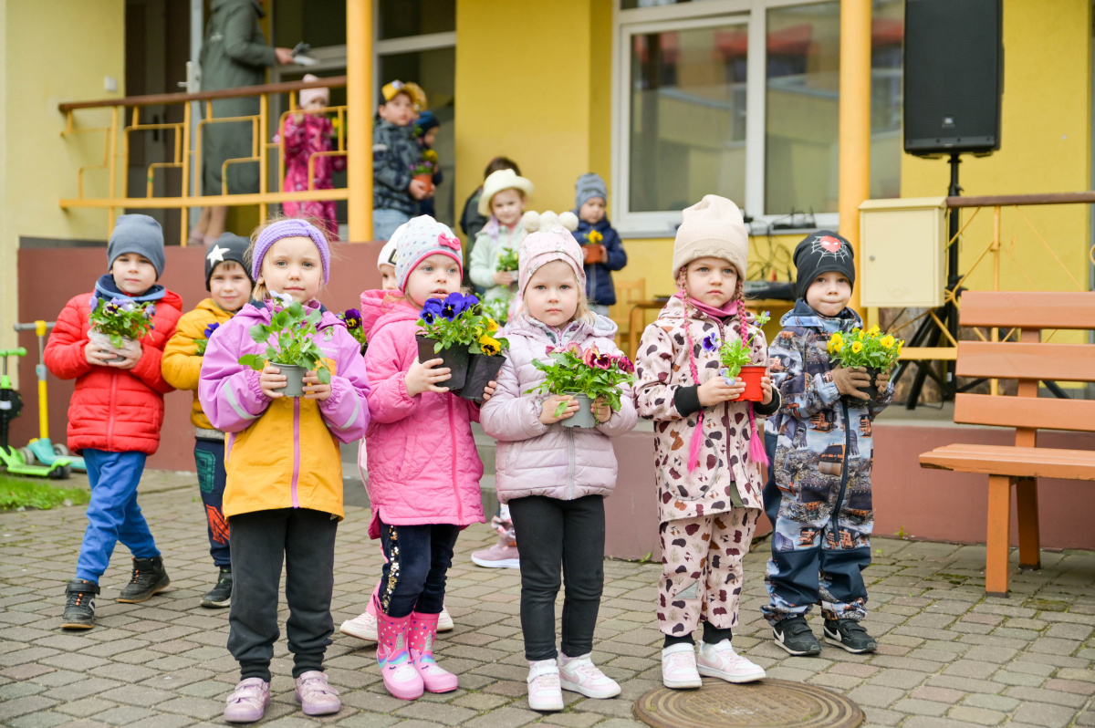 Воспитанники дошкольного образовательного учреждения «Саулите» высаживают анютины глазки