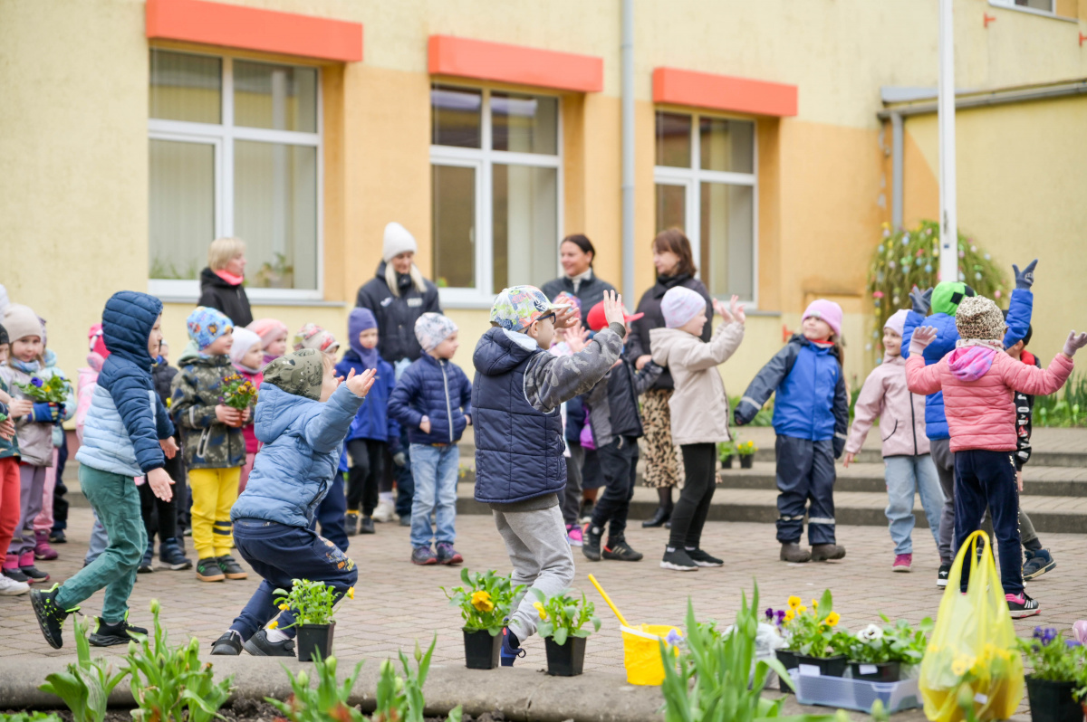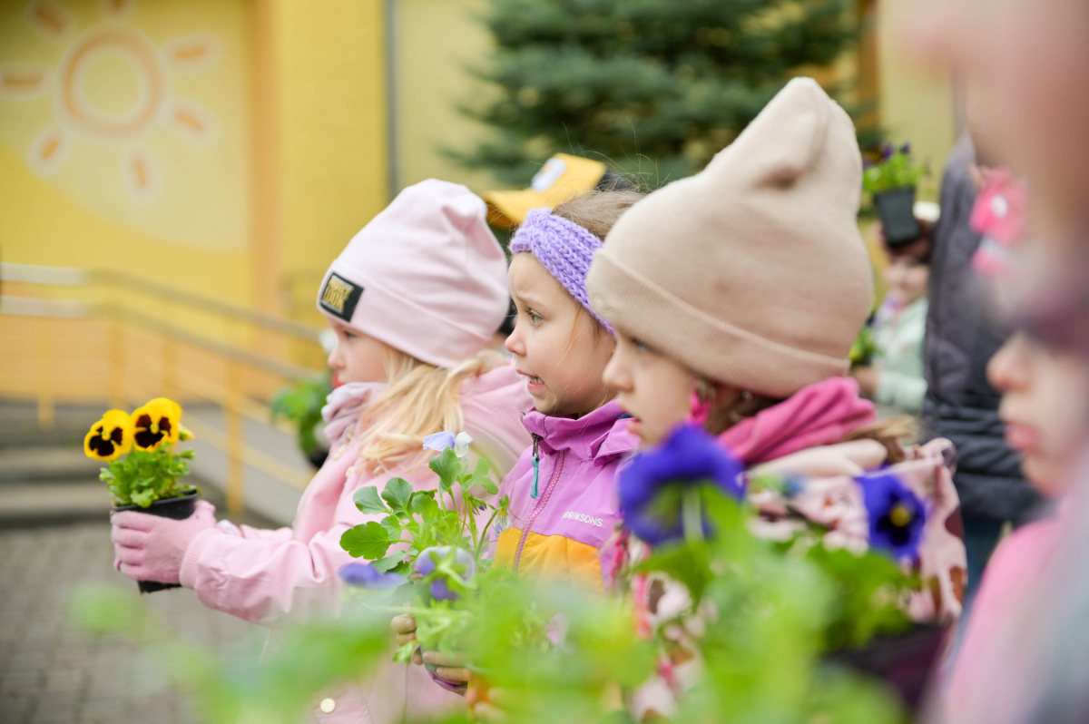 Воспитанники дошкольного образовательного учреждения «Саулите» высаживают анютины глазки