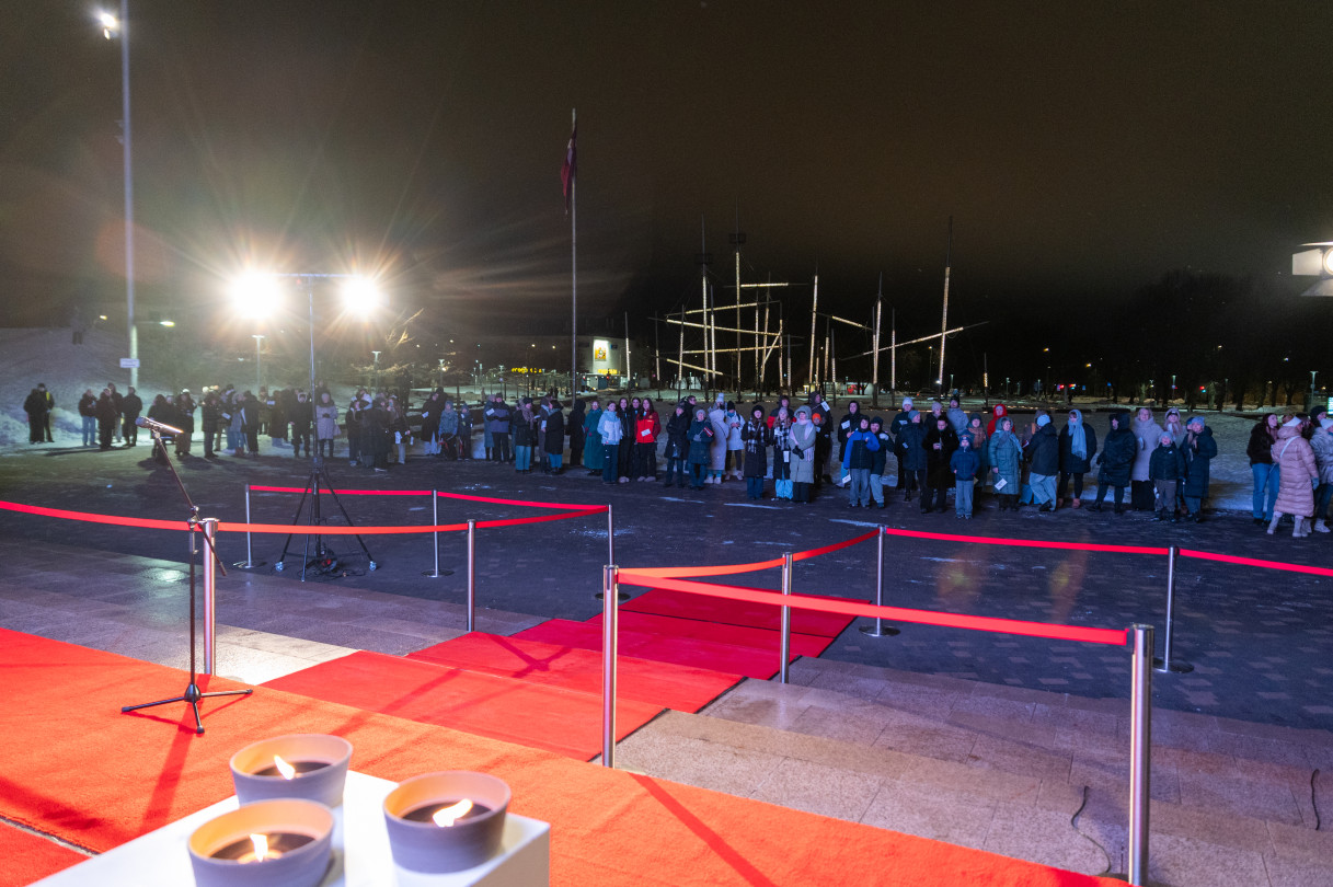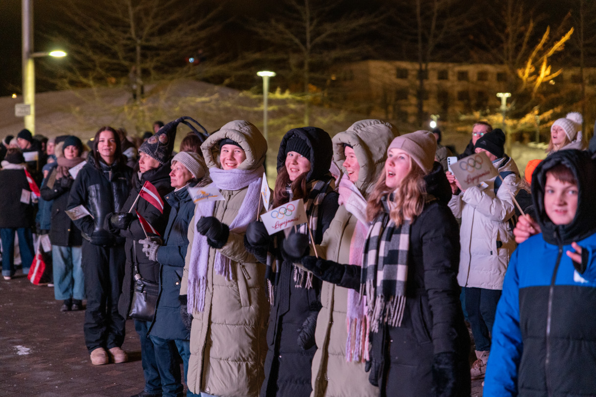 На площади Лиелайс чествовали шорт-трекиста, бронзового призёра Роберта Крузберга, бобслеиста Екаба Календу и тренера по шорт-треку Карлиса Крузберга.