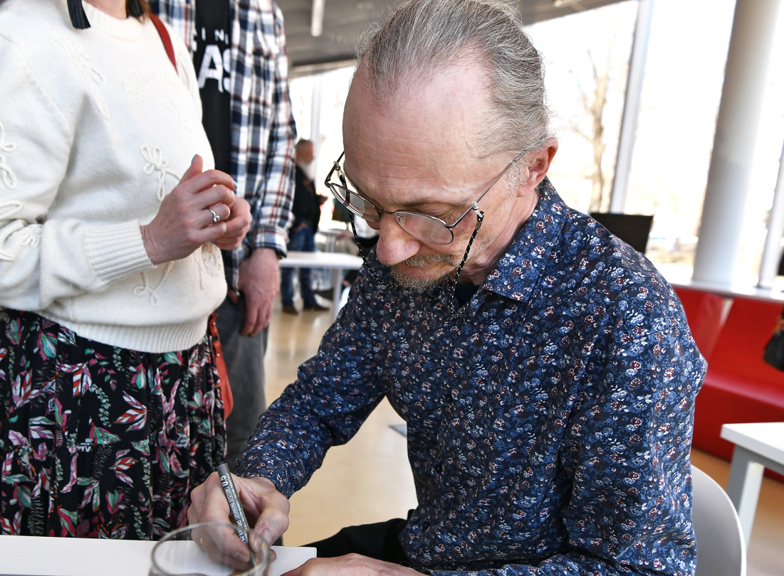В Парвентской библиотеке состоялось открытие персональной выставки Арниса Круминьша «Skatāms apiīlī», собравшее ценителей искусства и коллег художника.