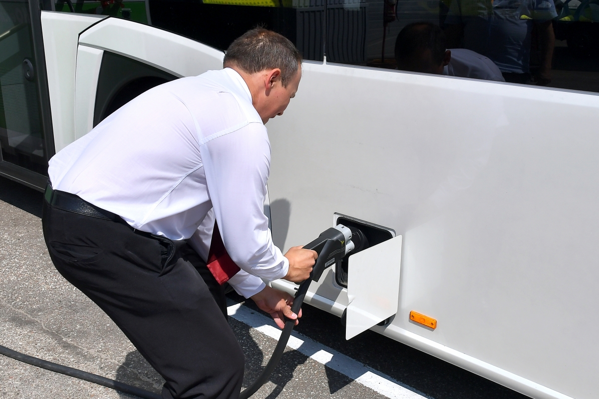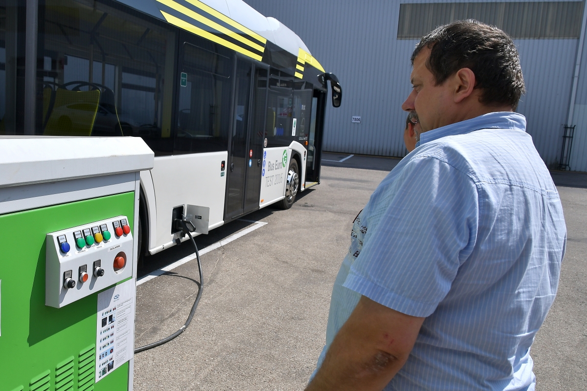 Тестовые поездки электробуса "Solaris". Фото: Айвар Кестерис.