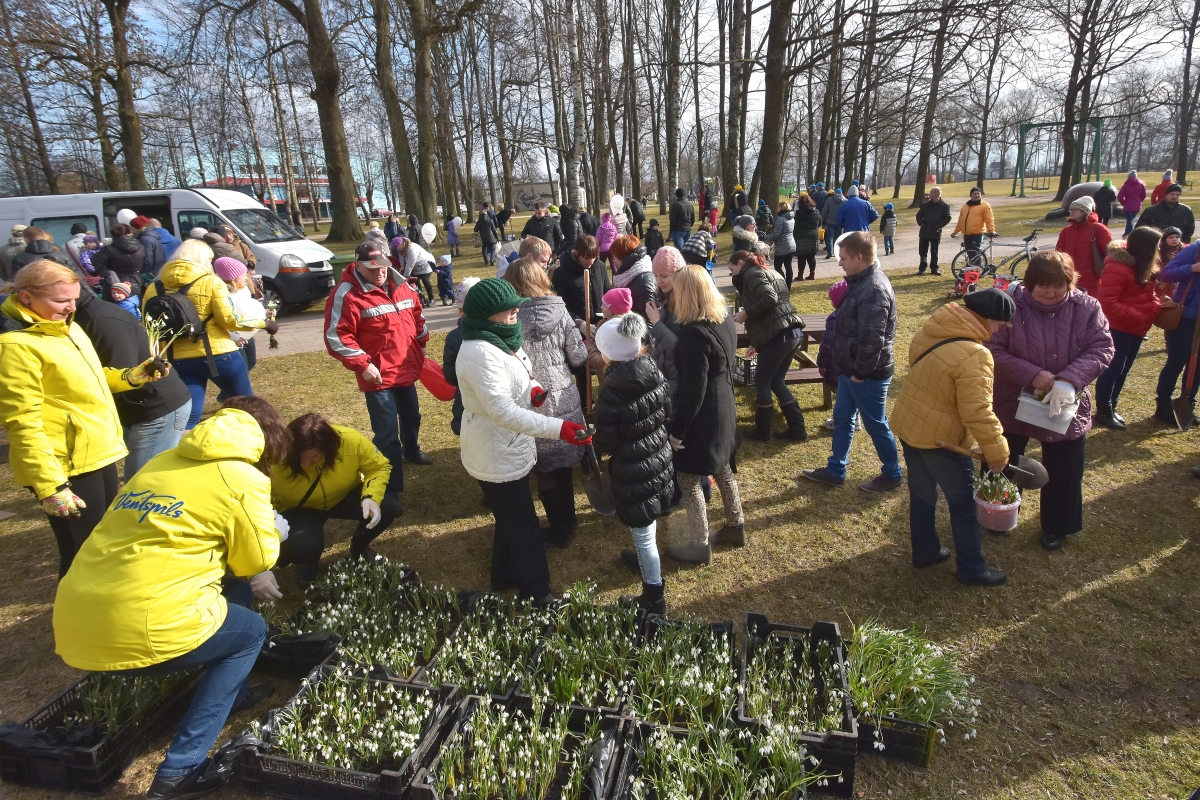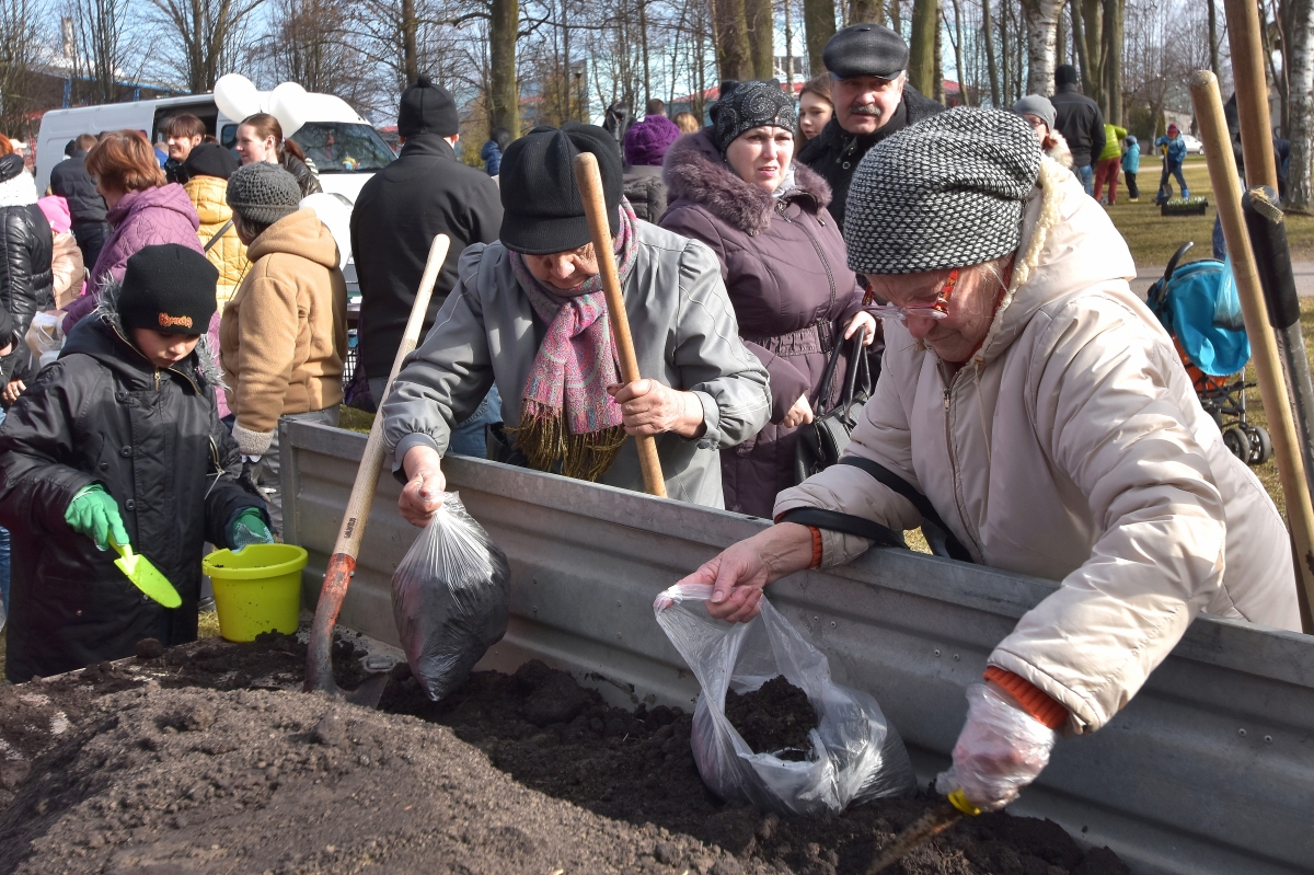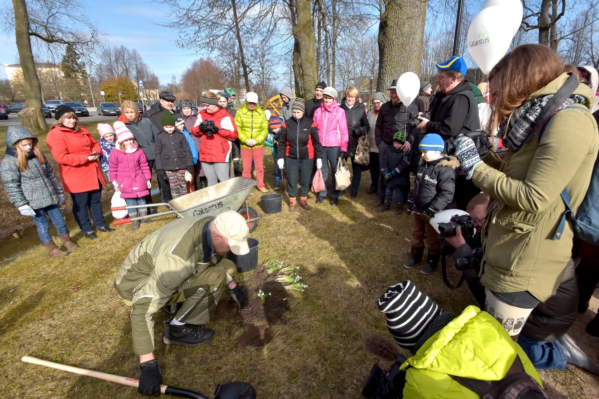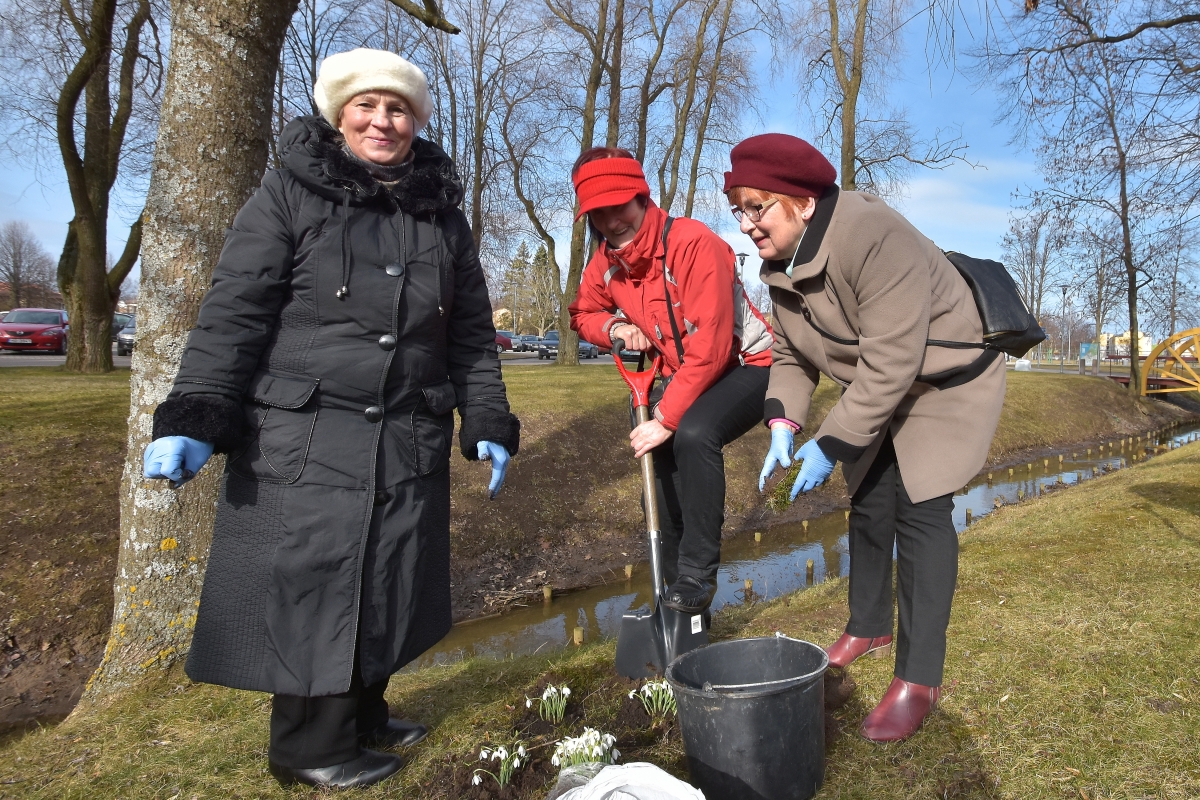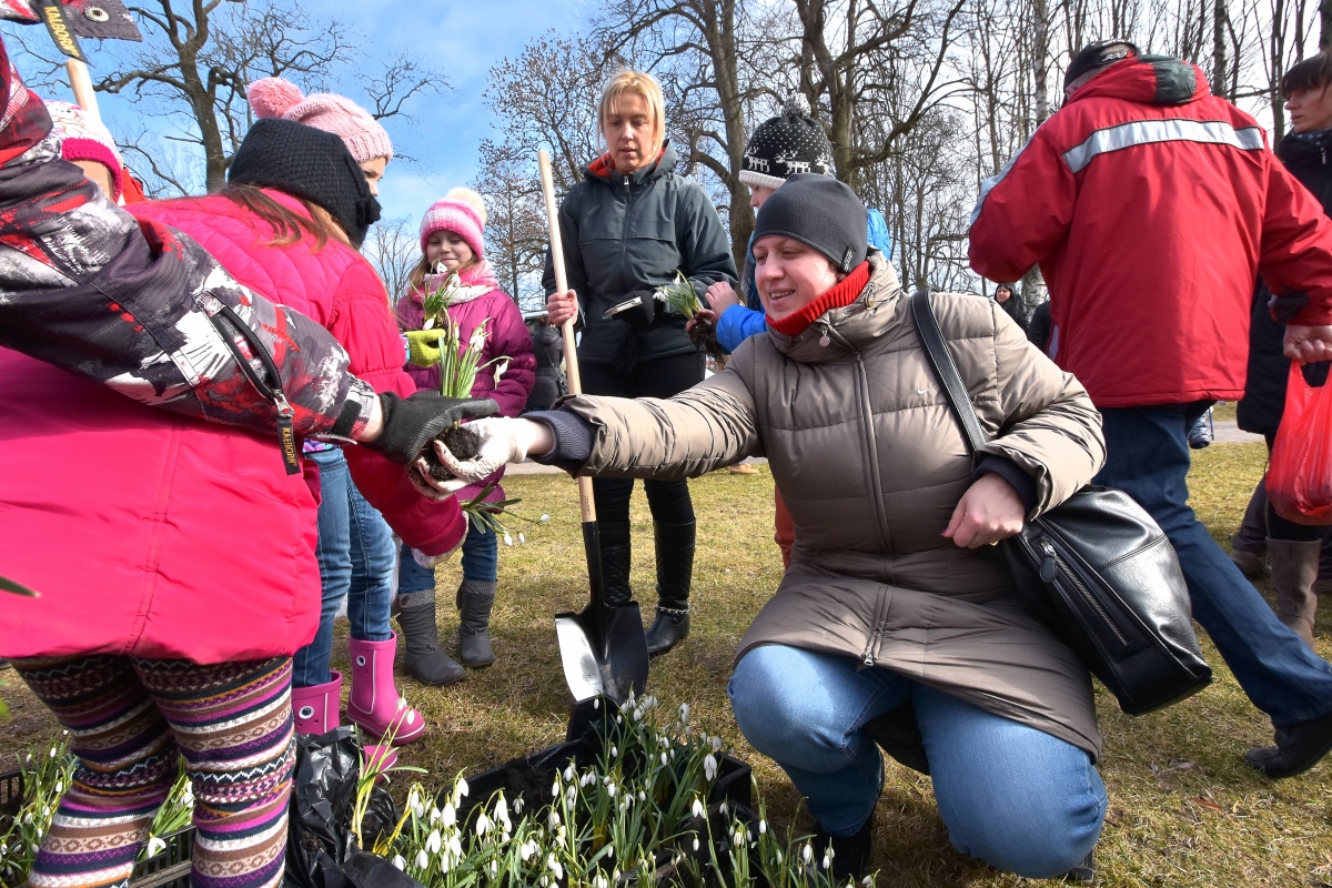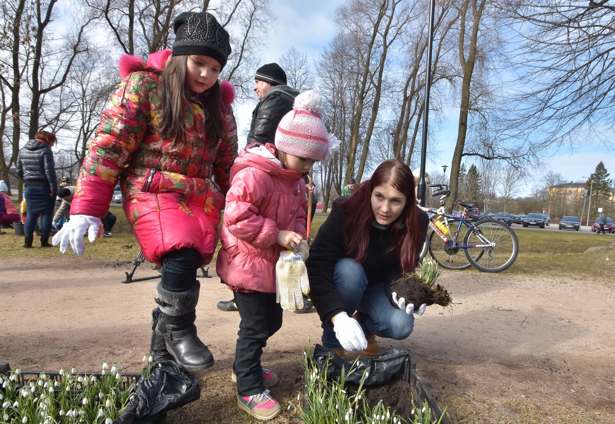 Субботник по посадке подснежников в саду Ренькя. ФОТО: Айвар Кестерис