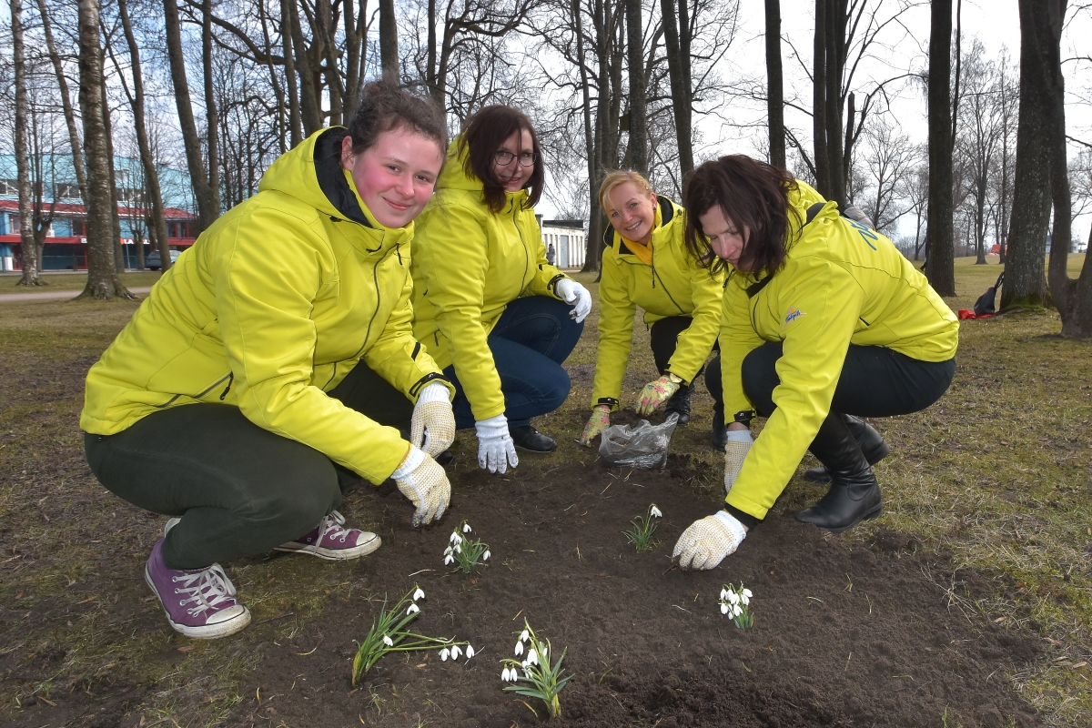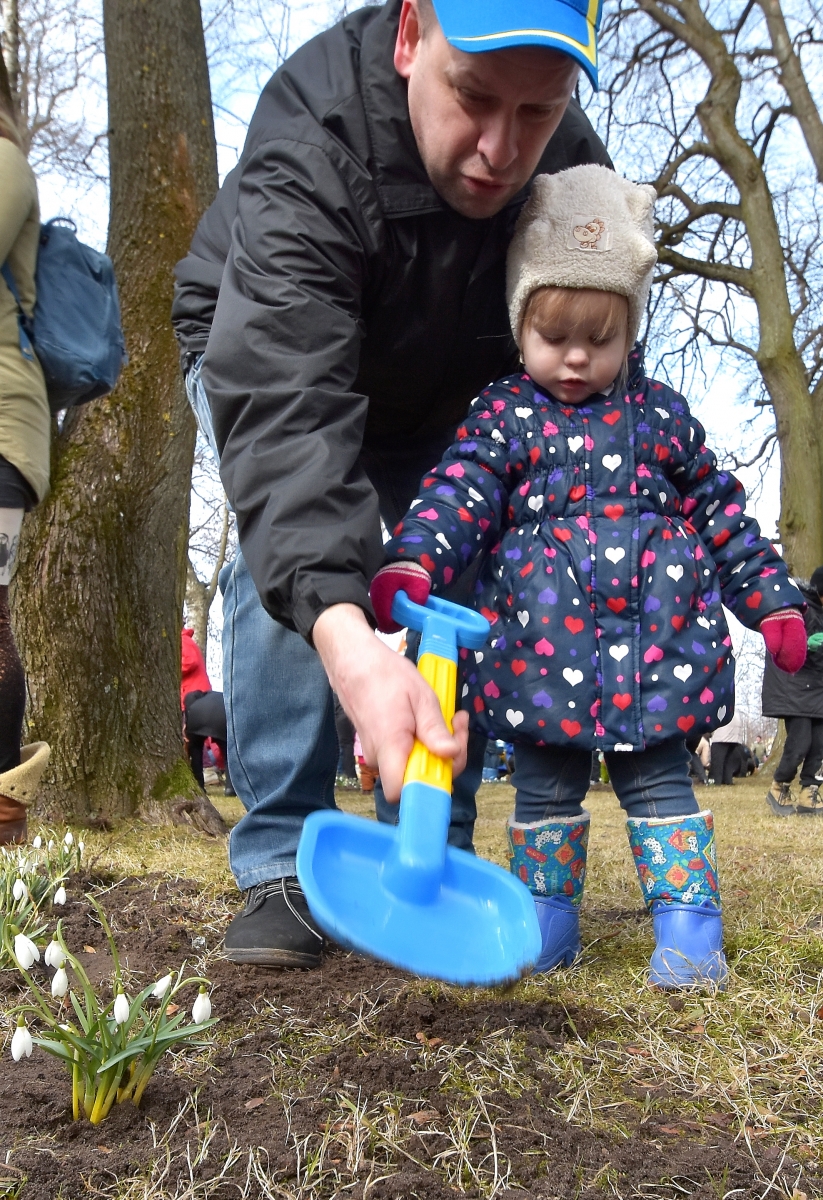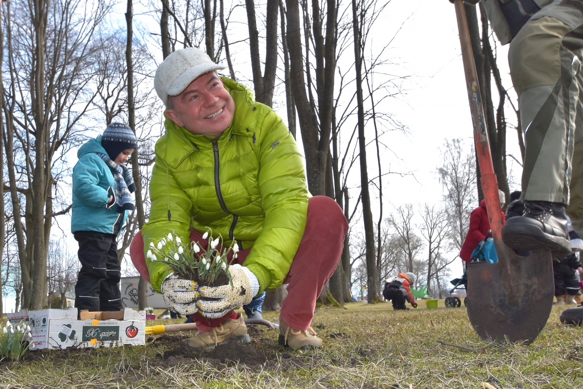 Субботник по посадке подснежников в саду Ренькя. ФОТО: Айвар Кестерис