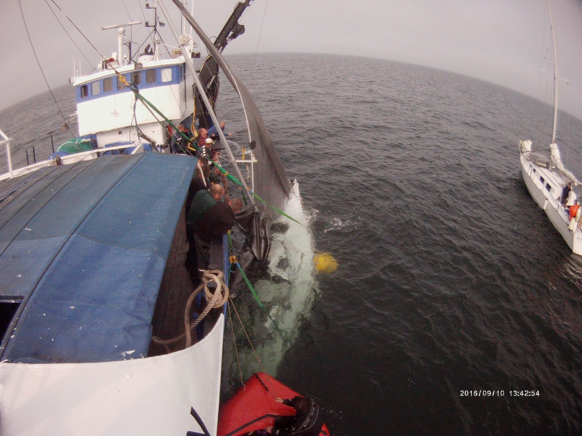 Подняли яхту со дна моря.