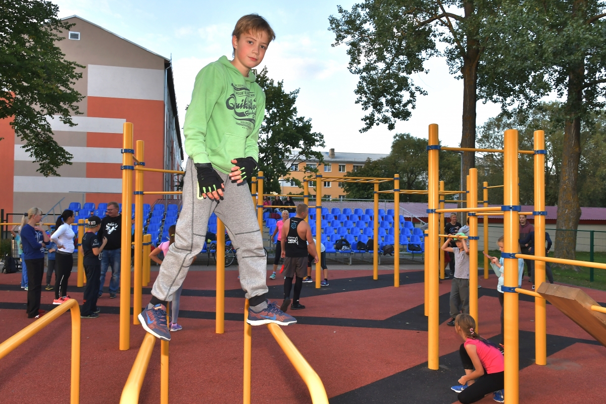 Открытая тренировка по уличной гимнастике. Фото: Айвар Кестерис.