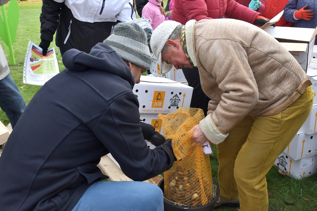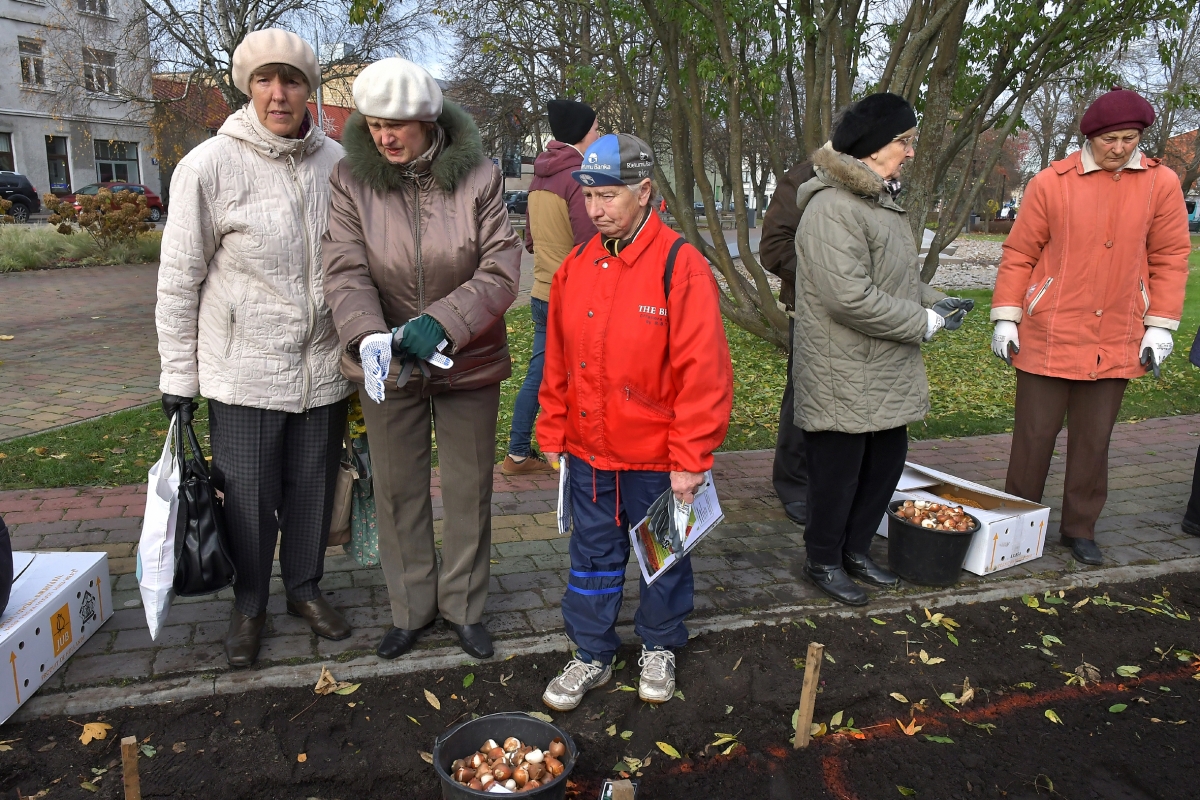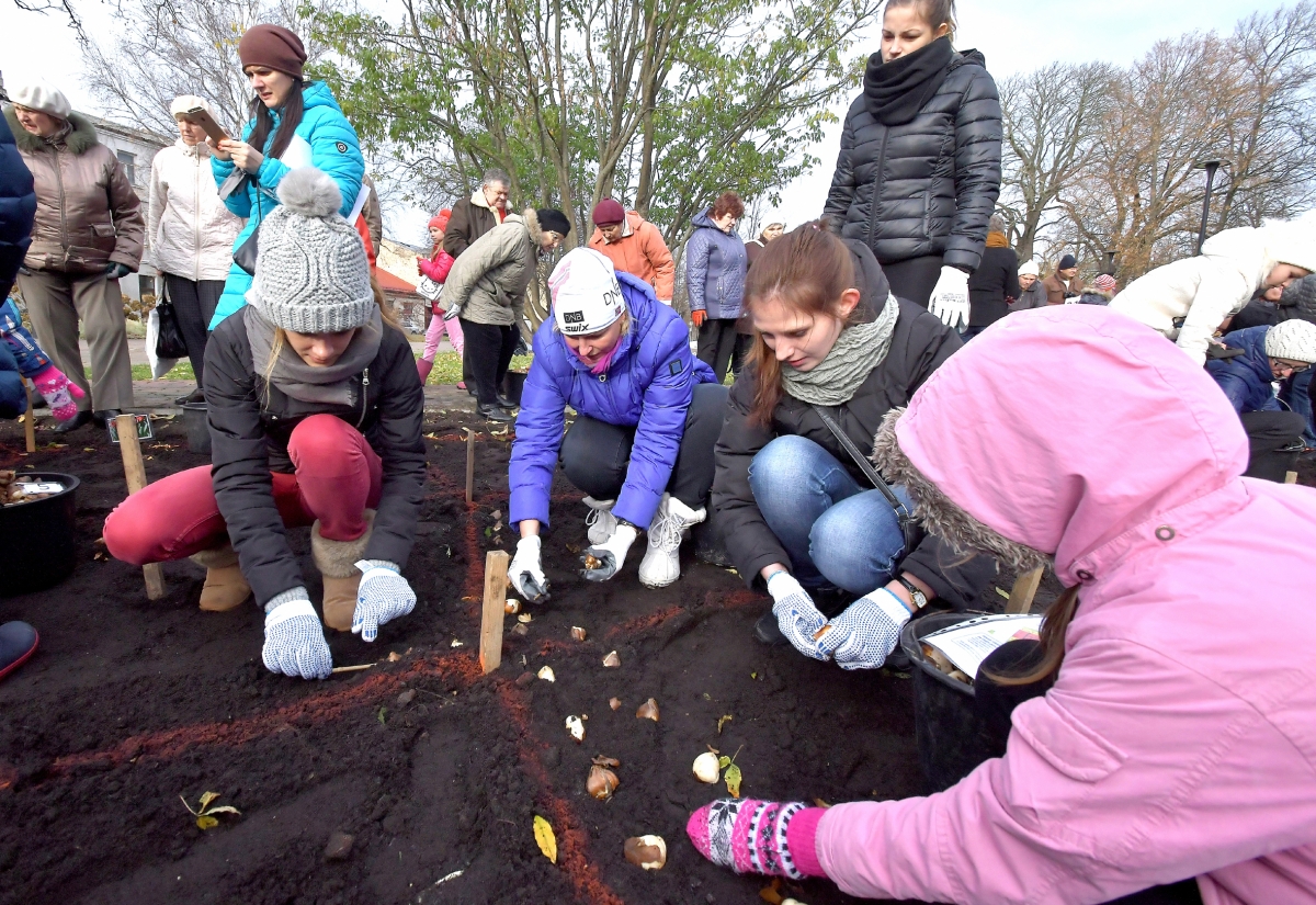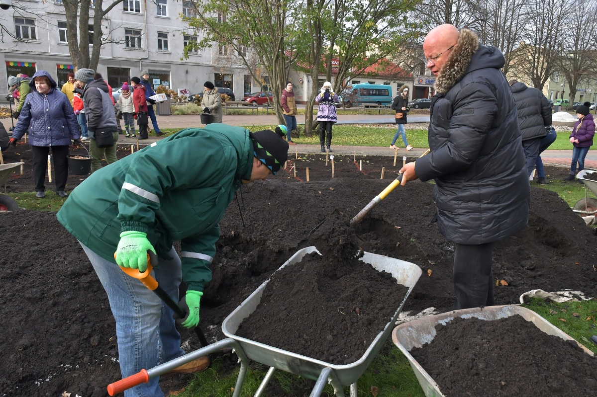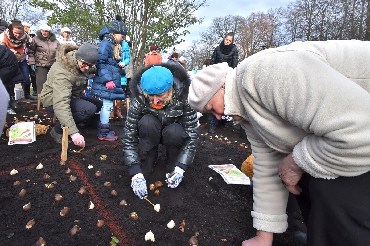 Мероприятие по посадке 2 000 луковиц особого сорта тюльпанов Латвия. Фото: Айвар Кестерис.