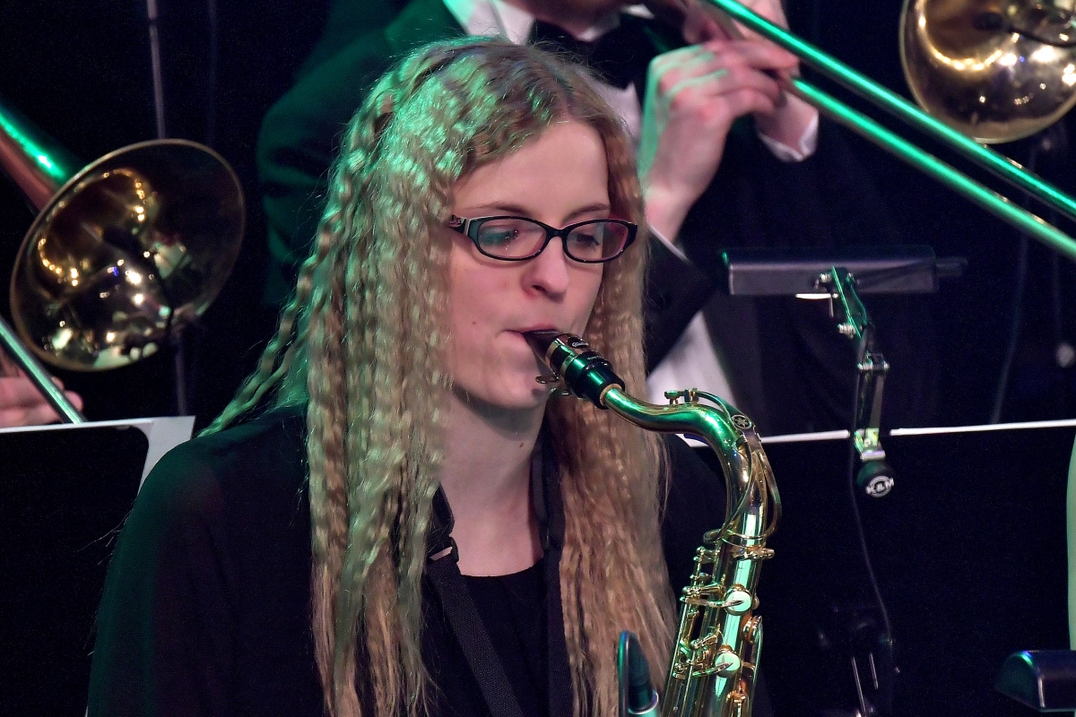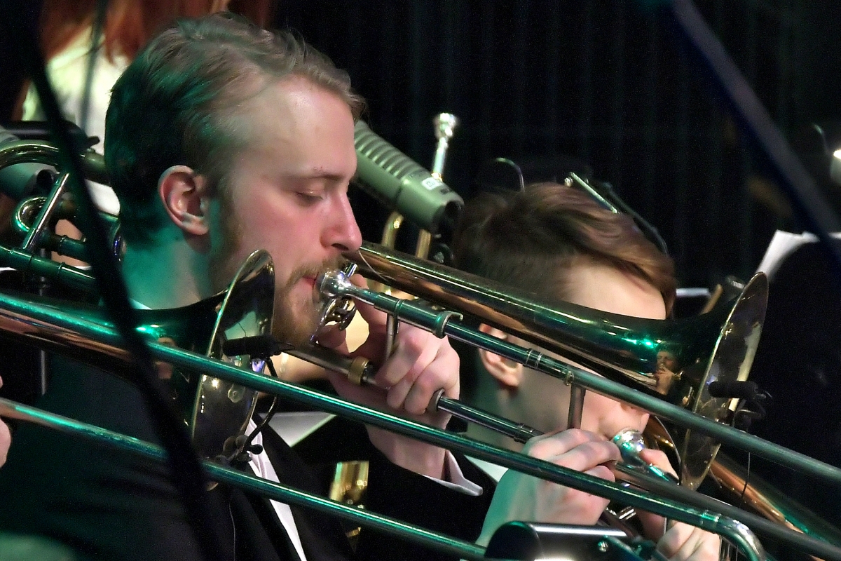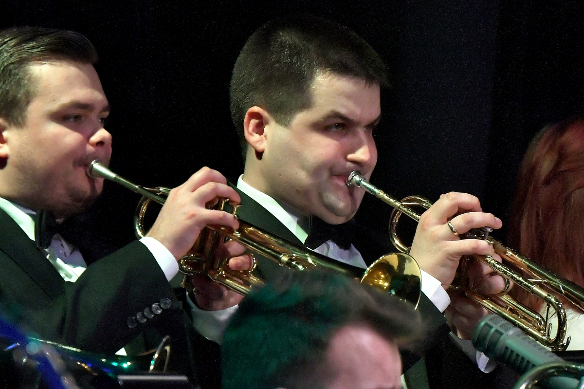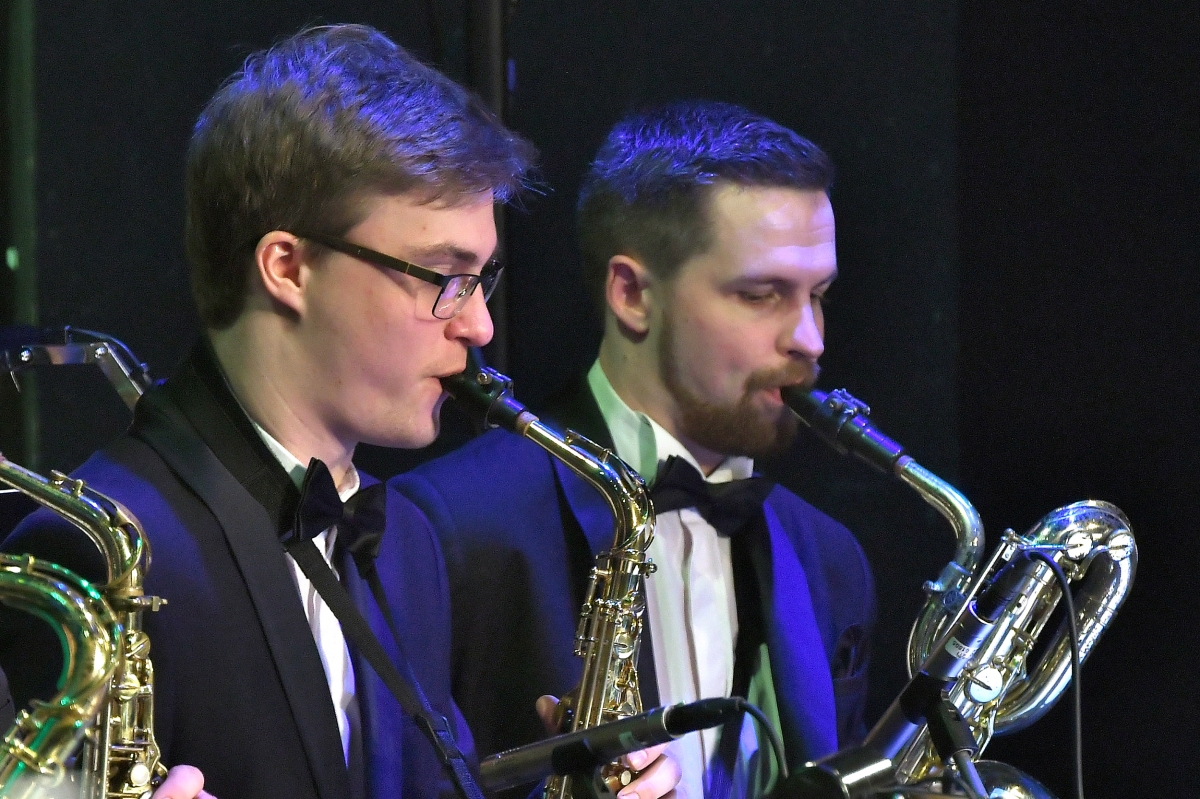 Вентспилсский биг-бенд, Нормунд Рутулис и Катрина Цируле на концерте в честь 8-го марта. Фото: Айвар Кестерис.