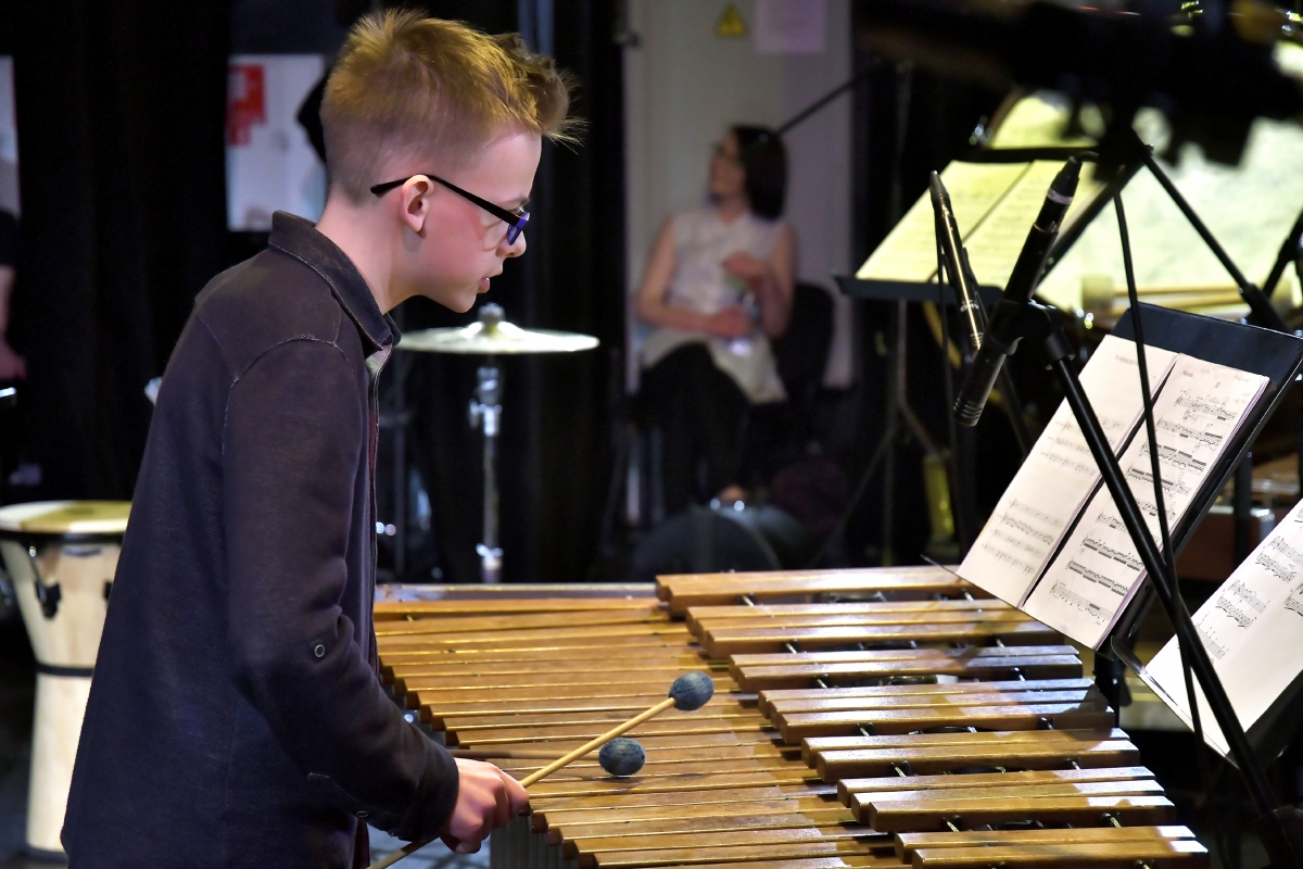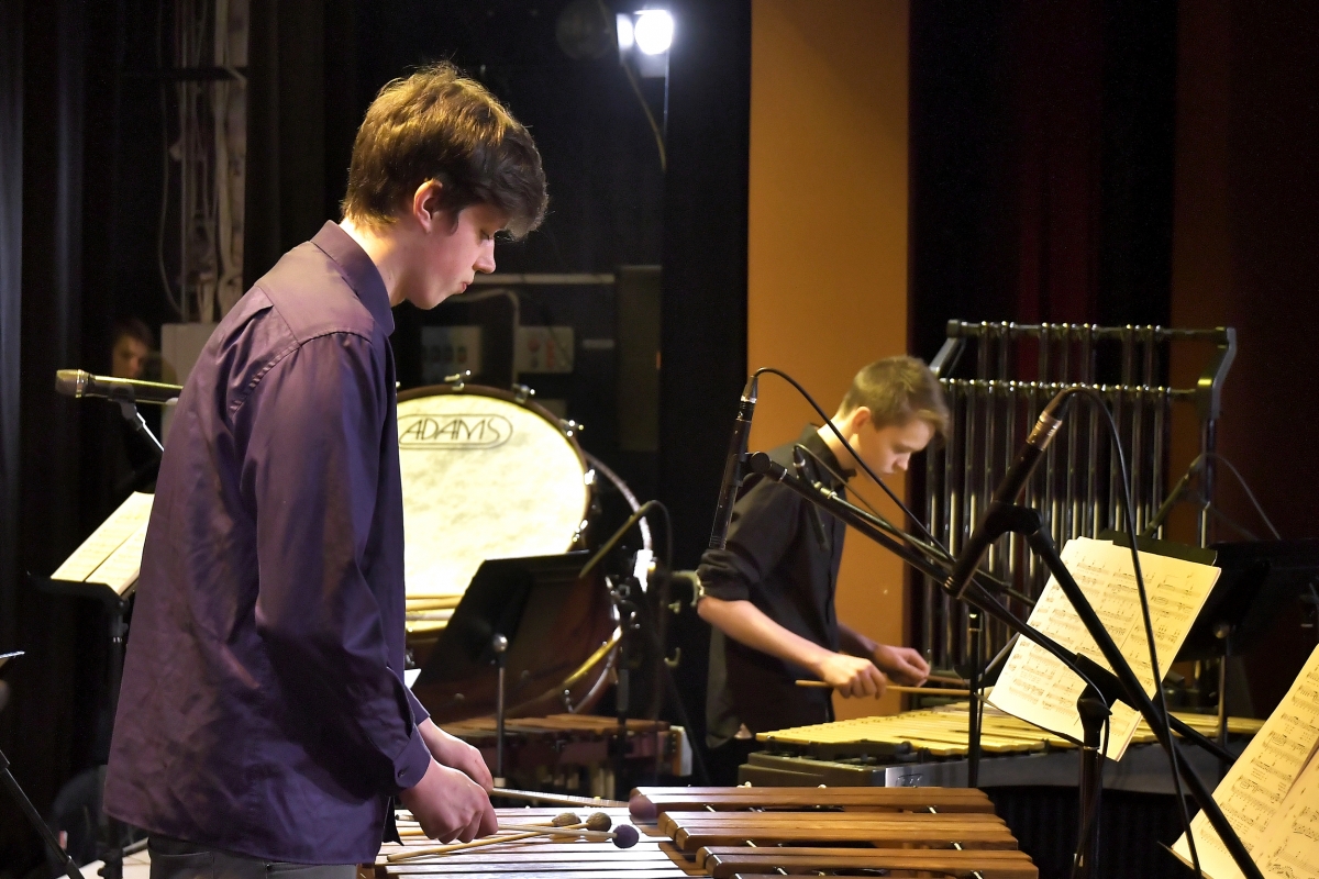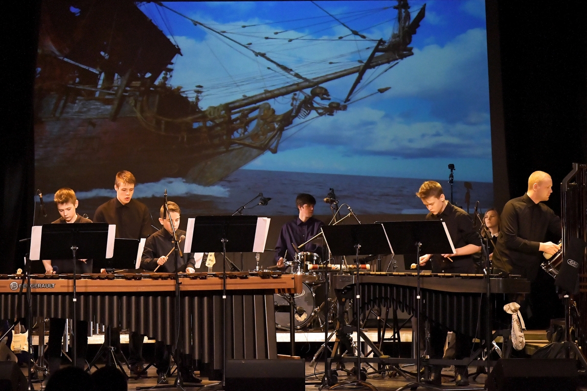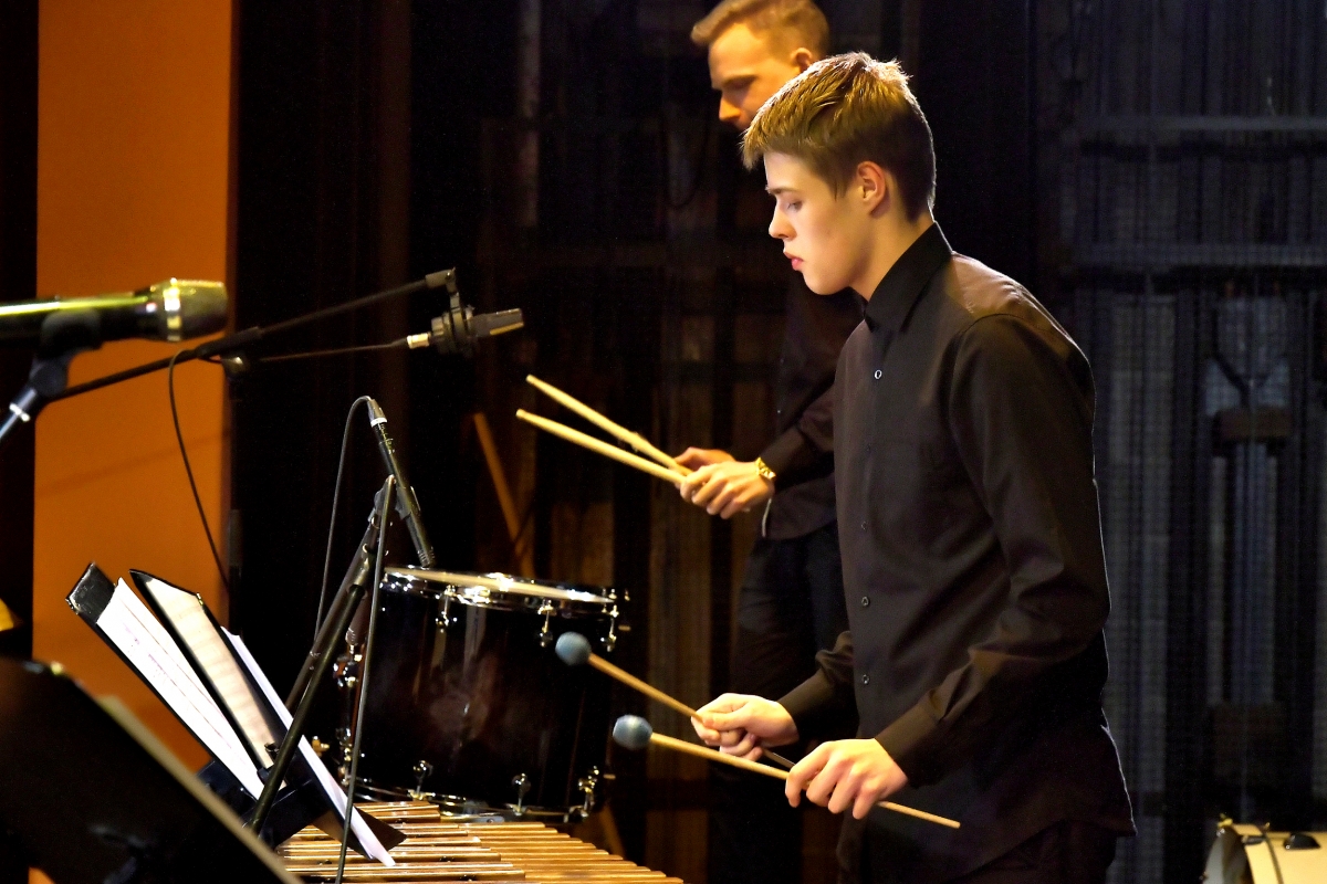 Дебютный концерт ансамбля ударных инструментов музучилища. Фото: Айвар Кестерис.