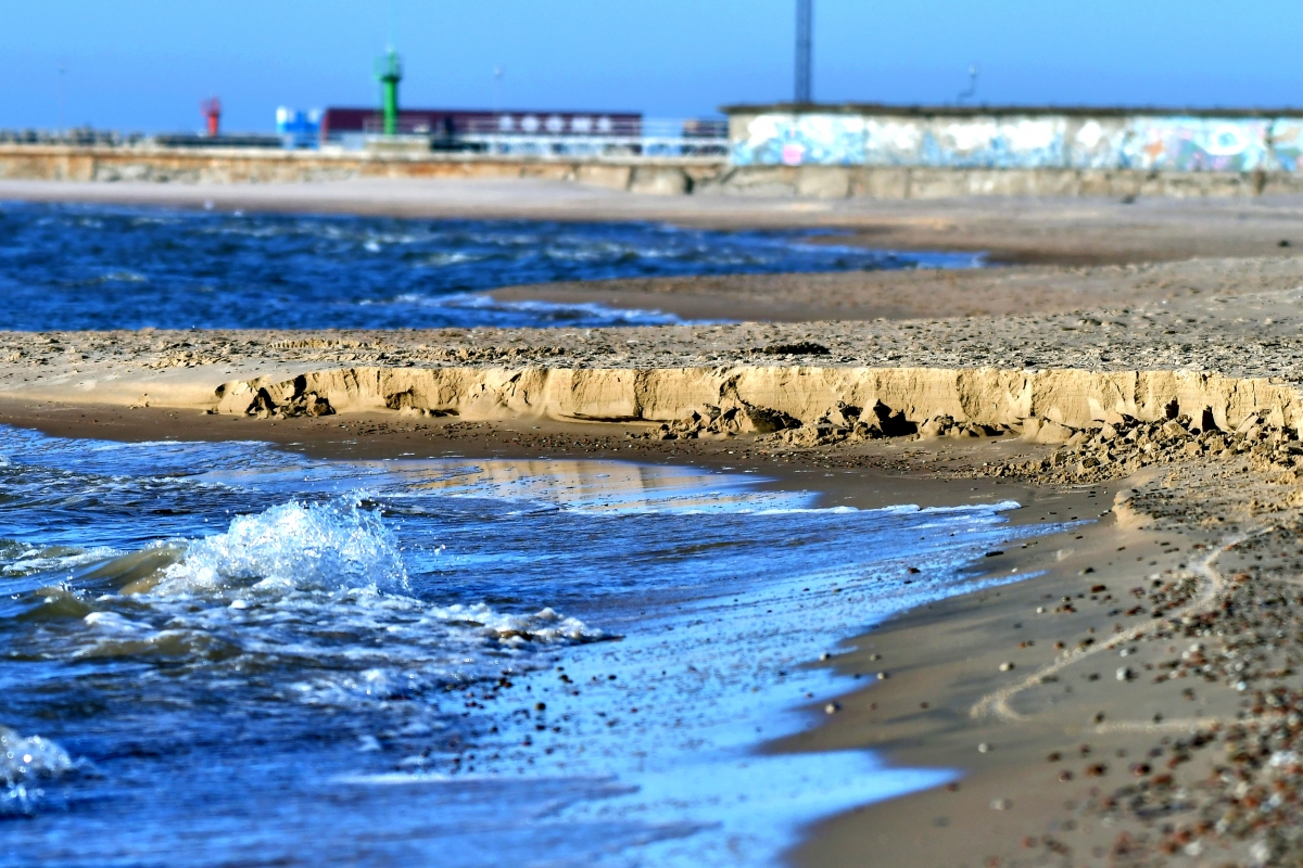 На Вентспилсском пляже наблюдается сильный отлив. Фото: Айвар Кестерис.