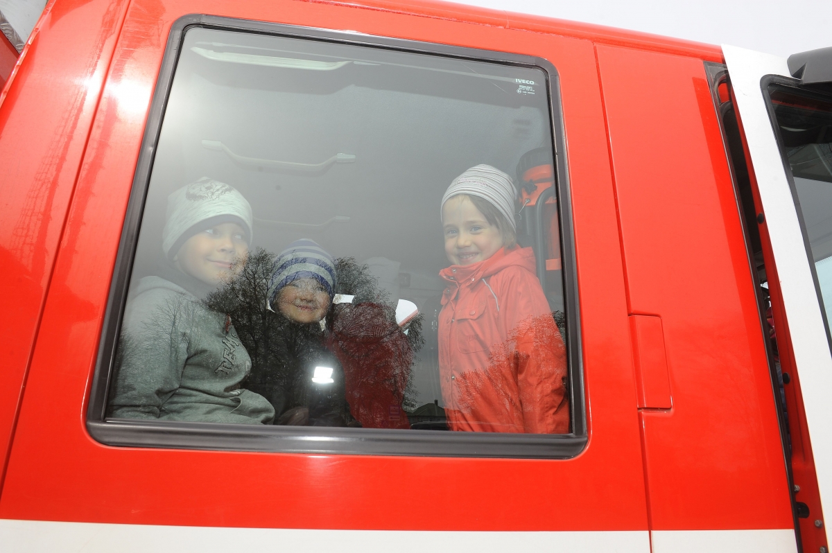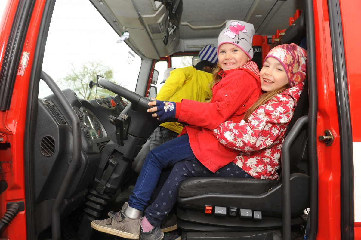 Пожарные знакомят со своей работой юных вентспилсчан. Фото: Юрис Гигулис.