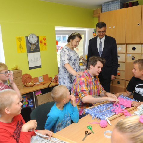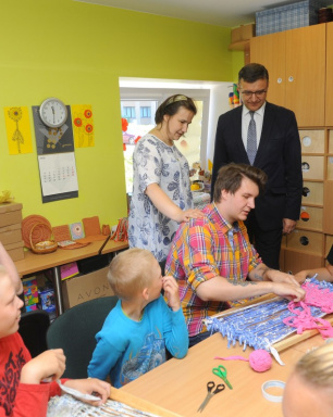 Министр благосостояния Янис Рейр гостит в центре поддержки Цимдиньш. Фото: Юрис Гигулис.