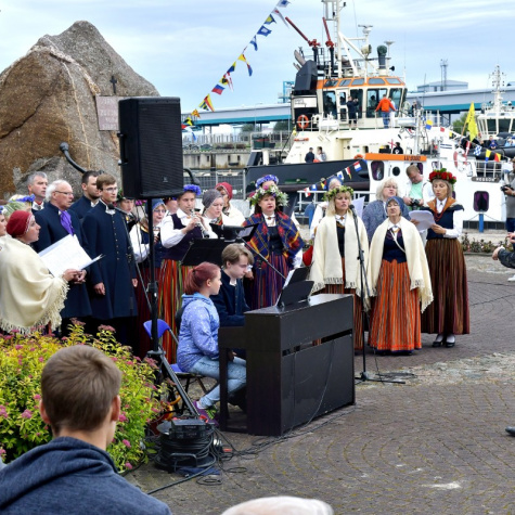 Памятное мероприятие у памятника "Морякам и рыбакам, покоящимся в морской пучине". Фото: Айварс Кестерис