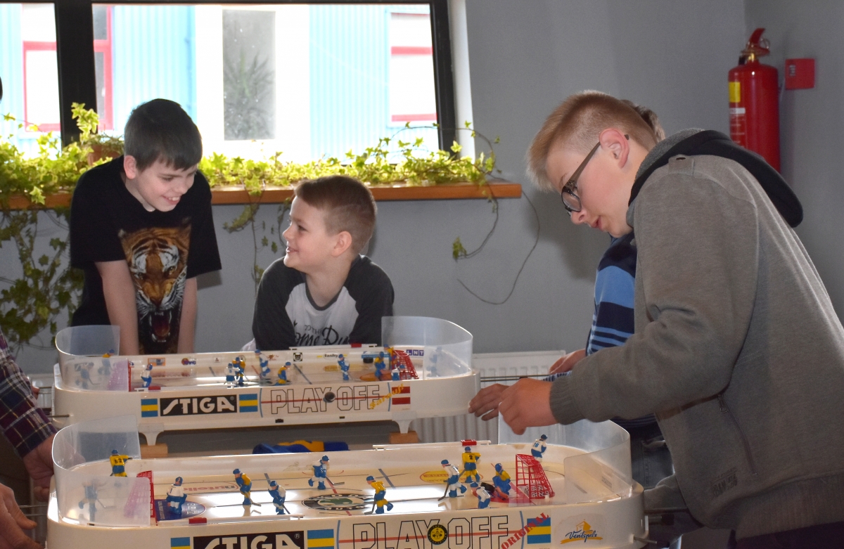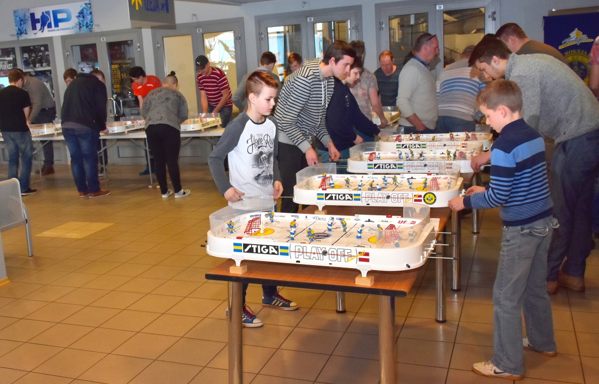 Розыгрыш кубка Вентспилса по настольному хоккею. ФОТО: Айвар Кестерис