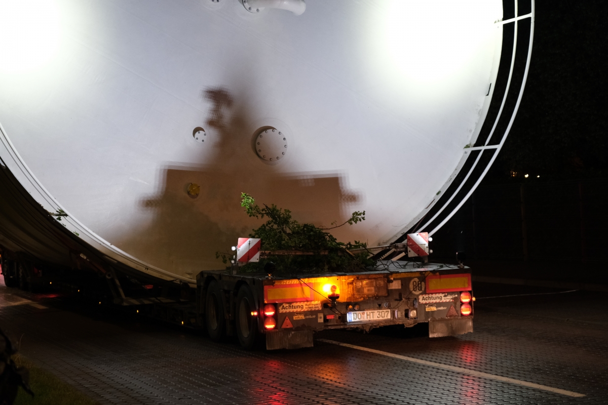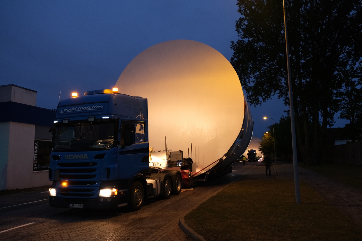 По Вентспилсу транспортируют крупногабаритный груз