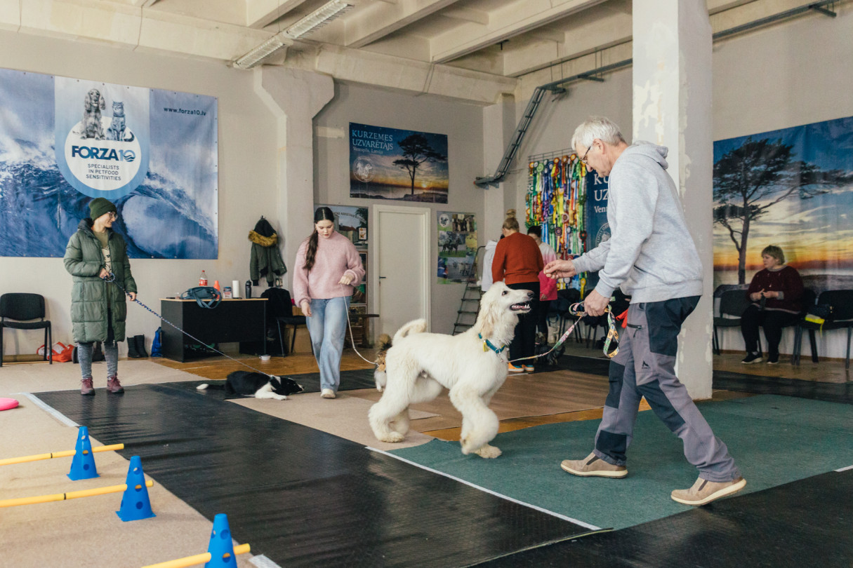 В этом году Вентспилсское общество заводчиков животных отметит 40-летие, и в честь юбилея было оборудовано помещение для занятий с собаками. Зал расположен на третьем этаже бывшего здания почты по улице Юрас, 9.