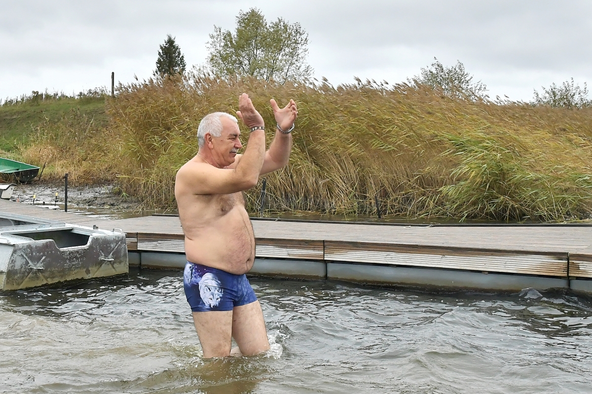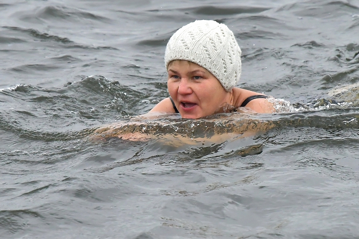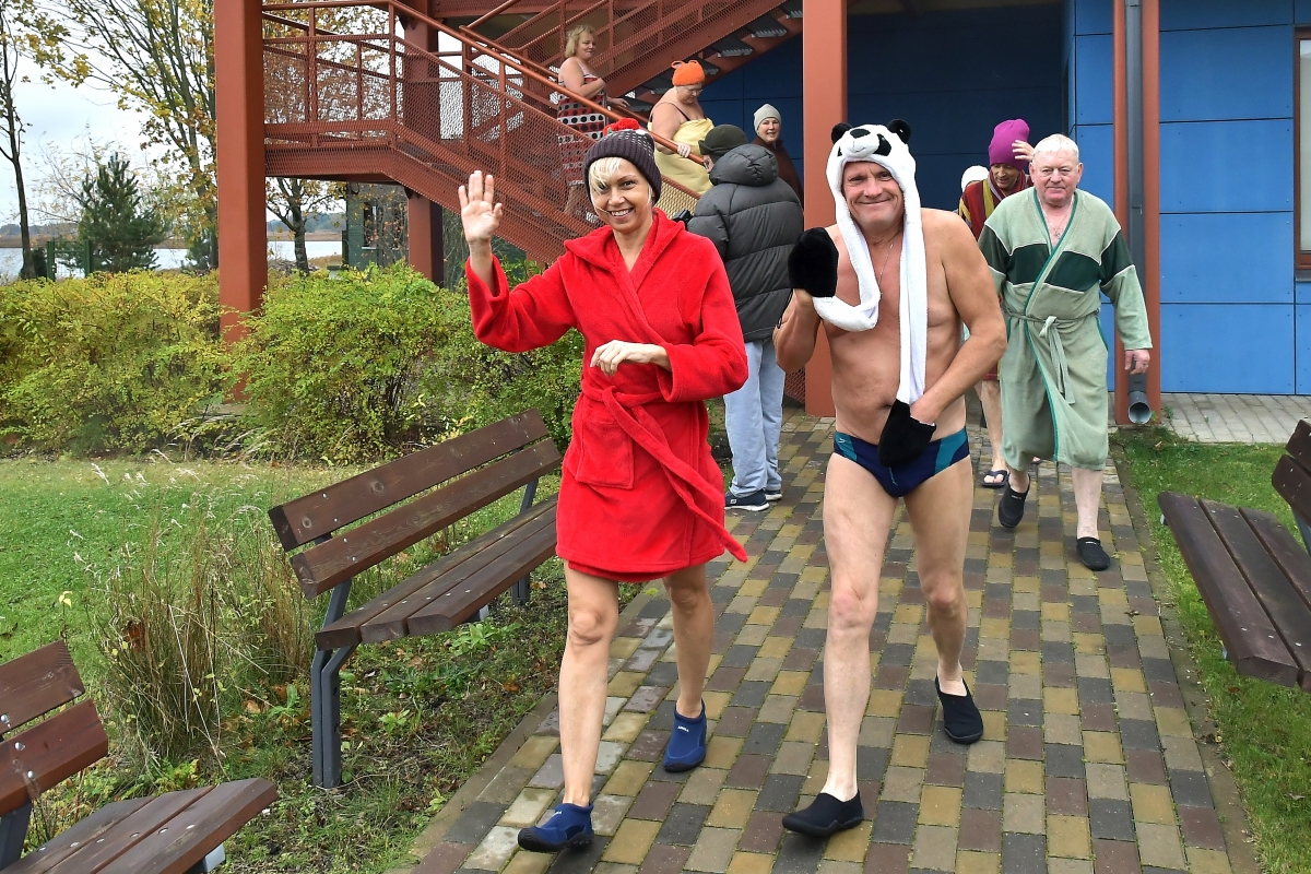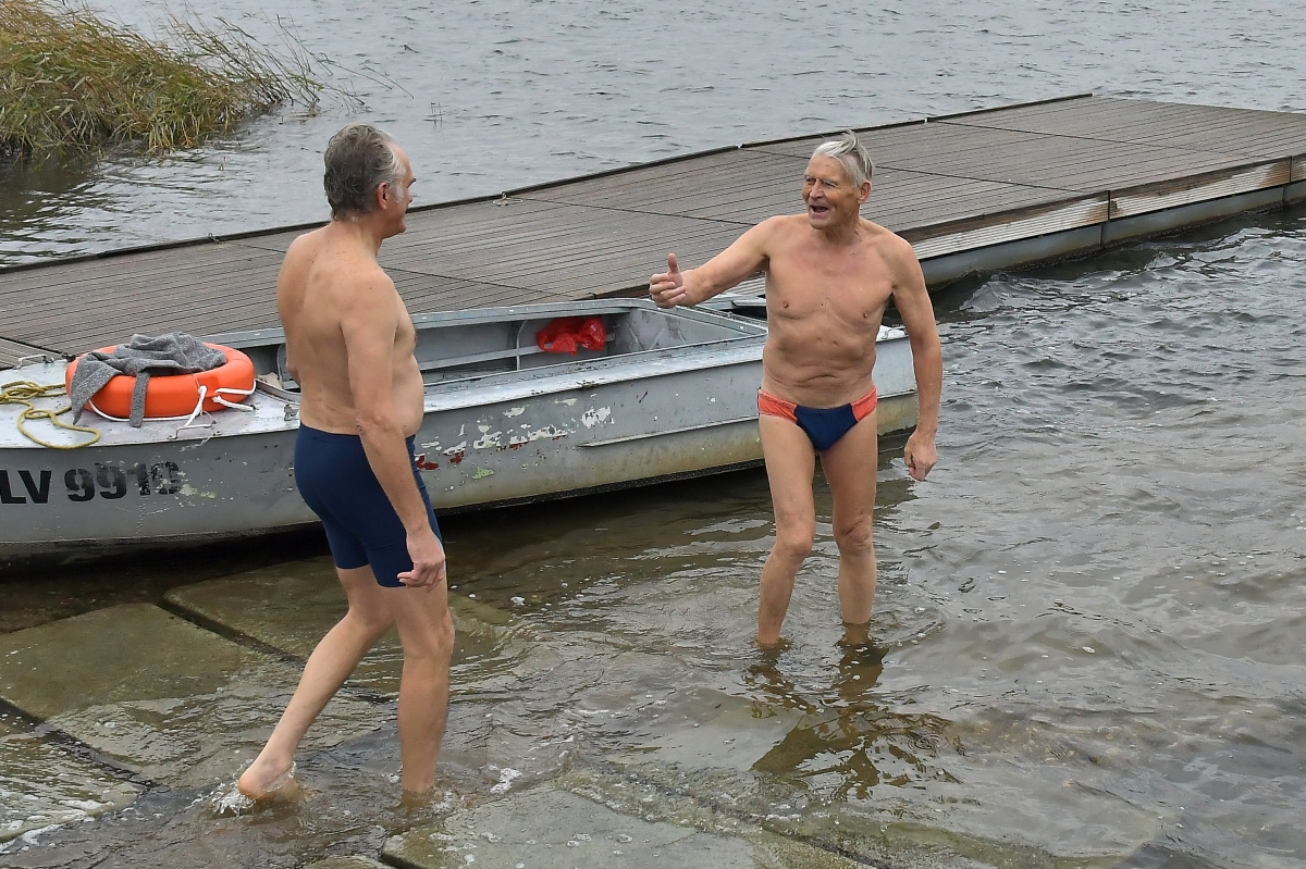 Любители зимнего плавания открыли сезон. Фото: Айвар Кестерис.