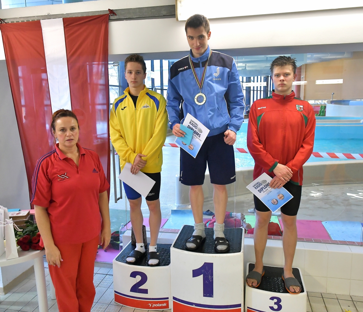 Дума поздравляет лучших пловцов Латвийской летней Олимпиады. Фото: Айвар Кестерис.