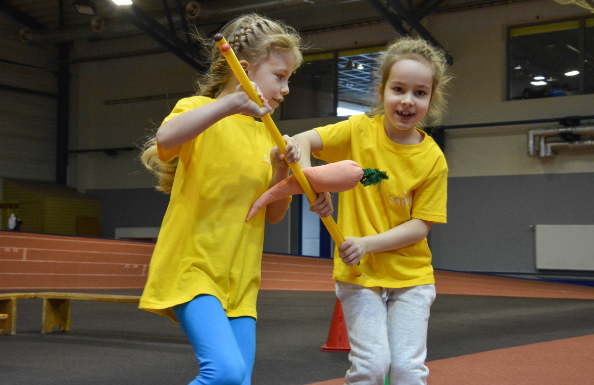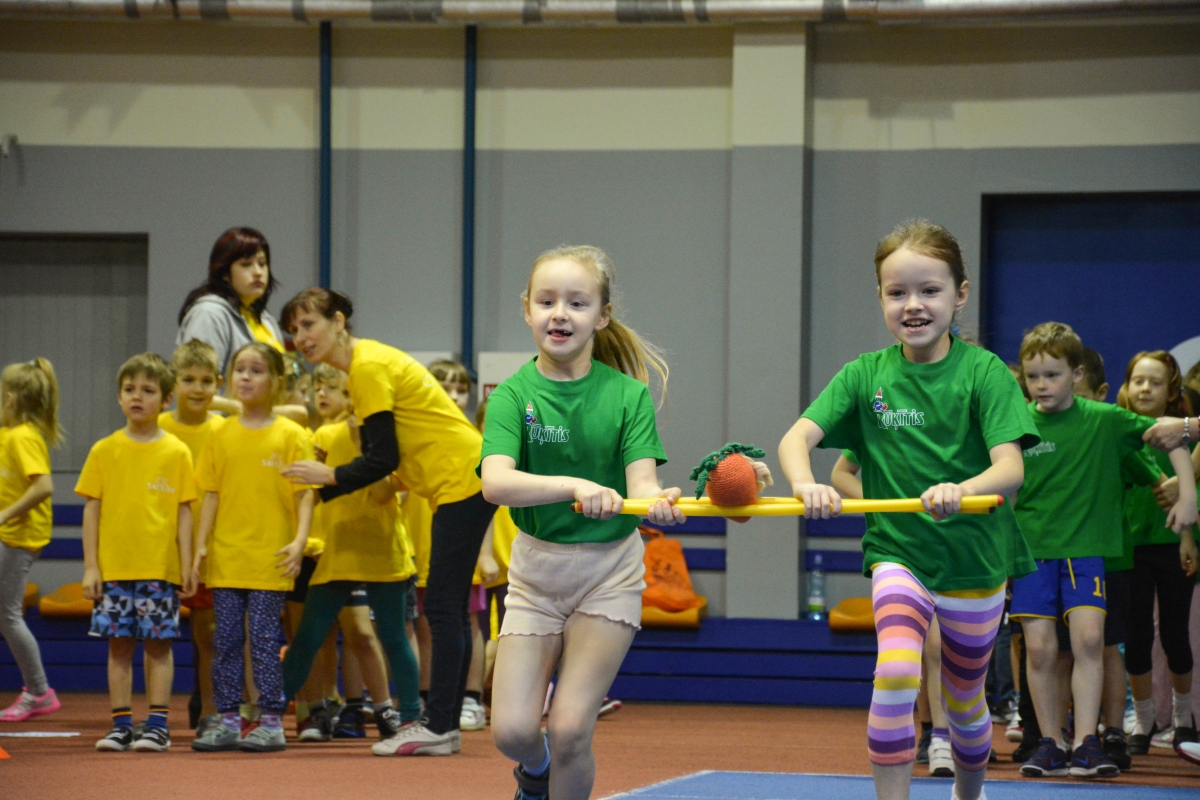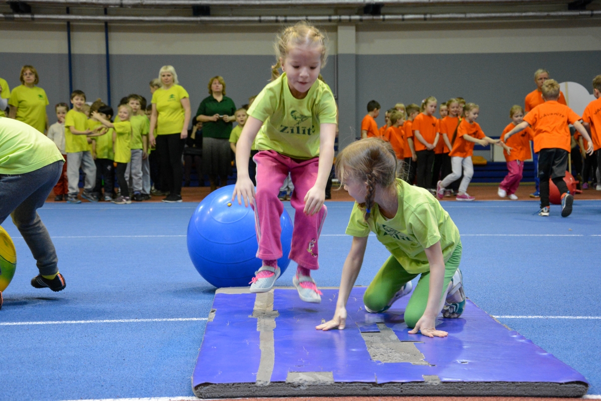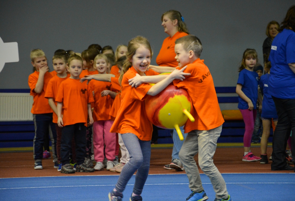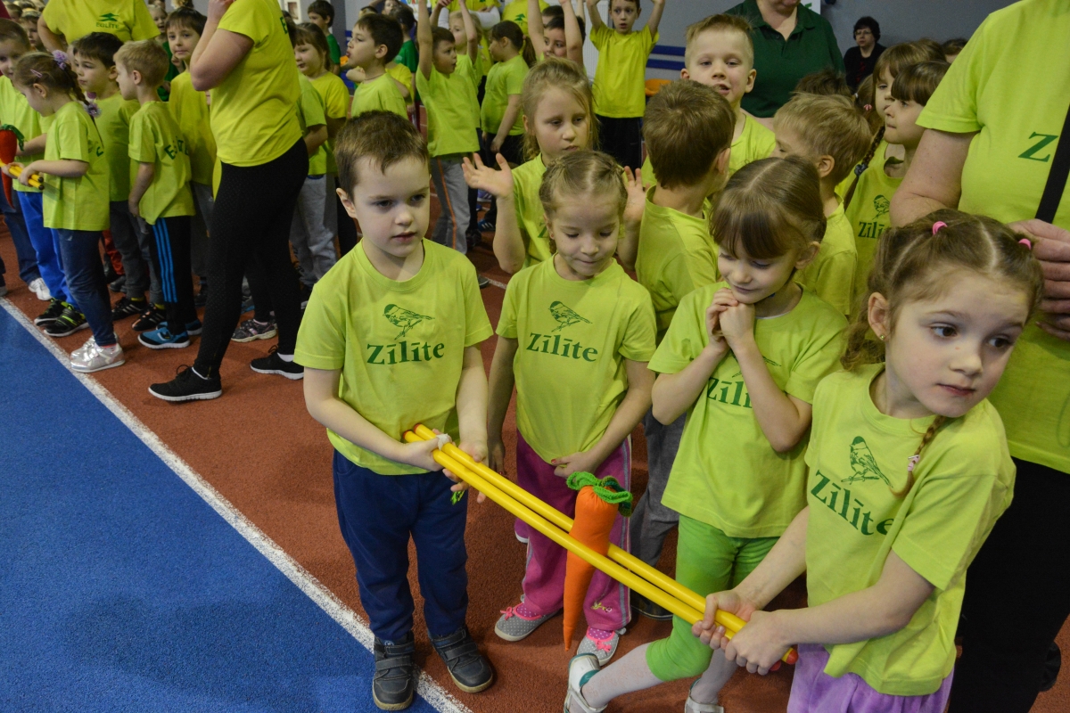 Воспитанники детсадиков участвуют в пасхальных спортивных играх. Фото: Лига Руде.