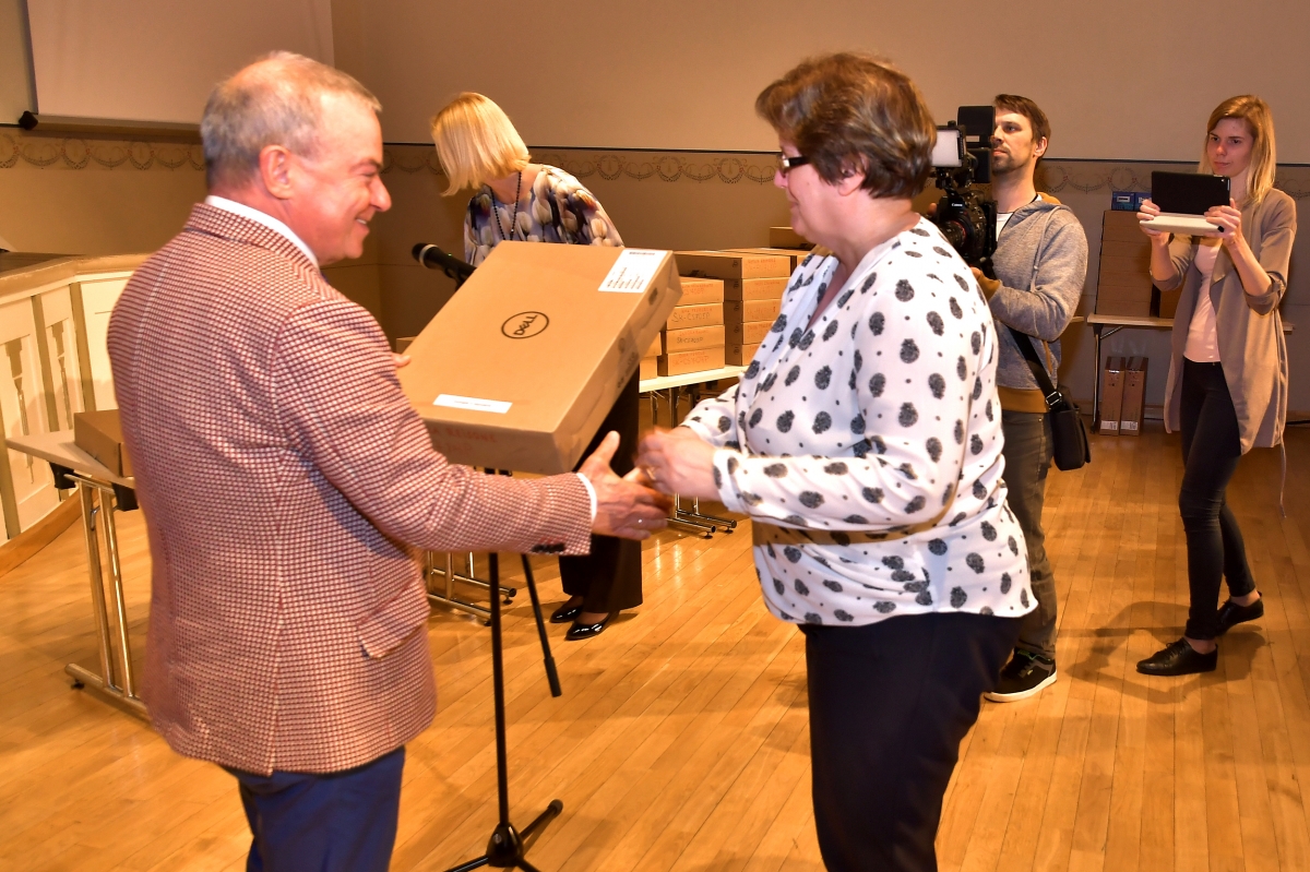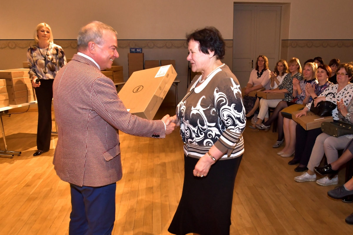 Вентспилсские учителя получили от гордумы новый компьютеры. Фото: Айвар Кестерис.