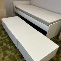 Кровать IKEA SLÄKT белого цвета (90x200 см) с 3 вместительными ящиками для хранения.