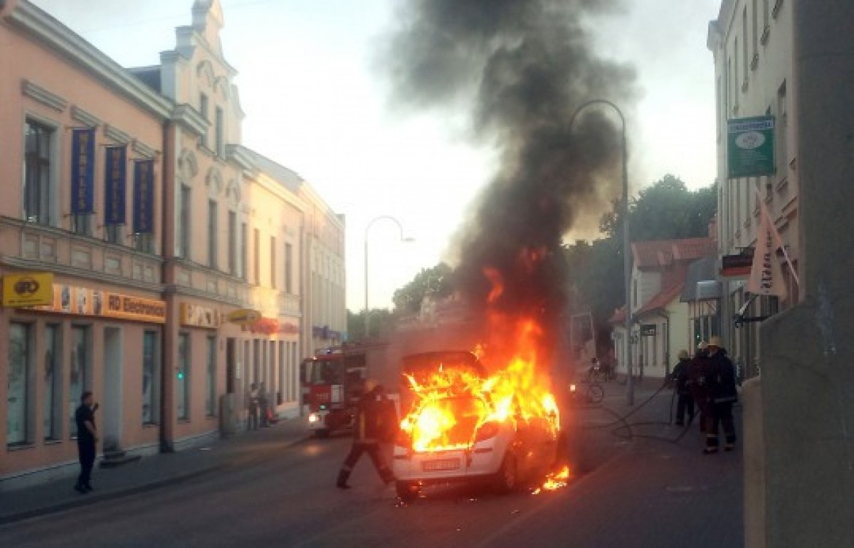 В центре Вентспилса сгорела машина