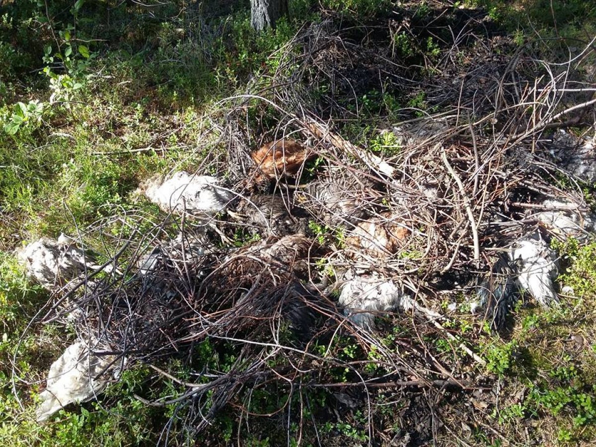 Мужчина регулярно ездит в это место погулять со своими собаками — расположено оно в 9 км от знака "Вентспилс", в метрах 100 от дороги. В воскресенье, отправившись на очередную прогулку по лесу, он стал свидетелем неприятной картины — его собаки нашли примерно 20 мертвых домашних птиц под ветками.