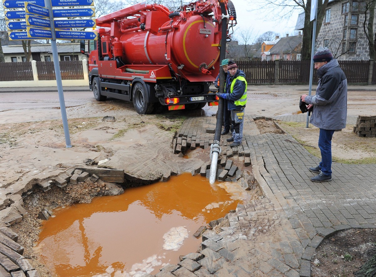 Из-за аварии перебои в подаче воды и недостаточное давление возможны в южной части города в сторону побережья. До устранения аварии подача воды полностью остановлена на ул. Васарницу на отрезке между улицами Ригас и Карлинас, а также на ул. Юрас между ул. Васарницу и Католю.