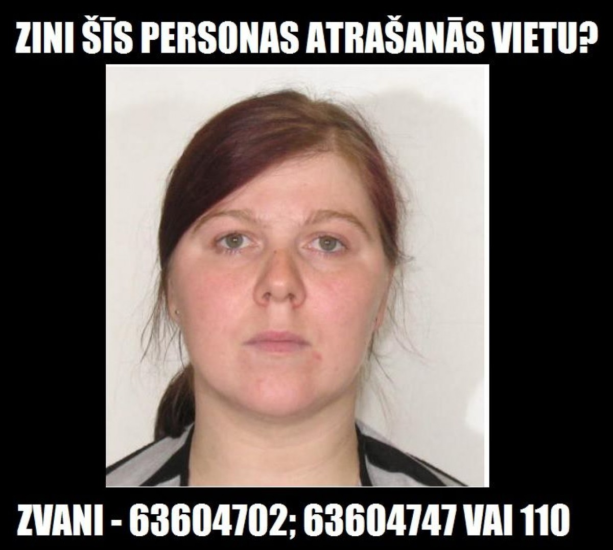 Если у вас есть какая-либо информация о возможном местопребывании женщины, просим, сообщить об этом сотрудникам Вентспилсского участка Госполиции по тел. 63604702, 63604747 или 110.