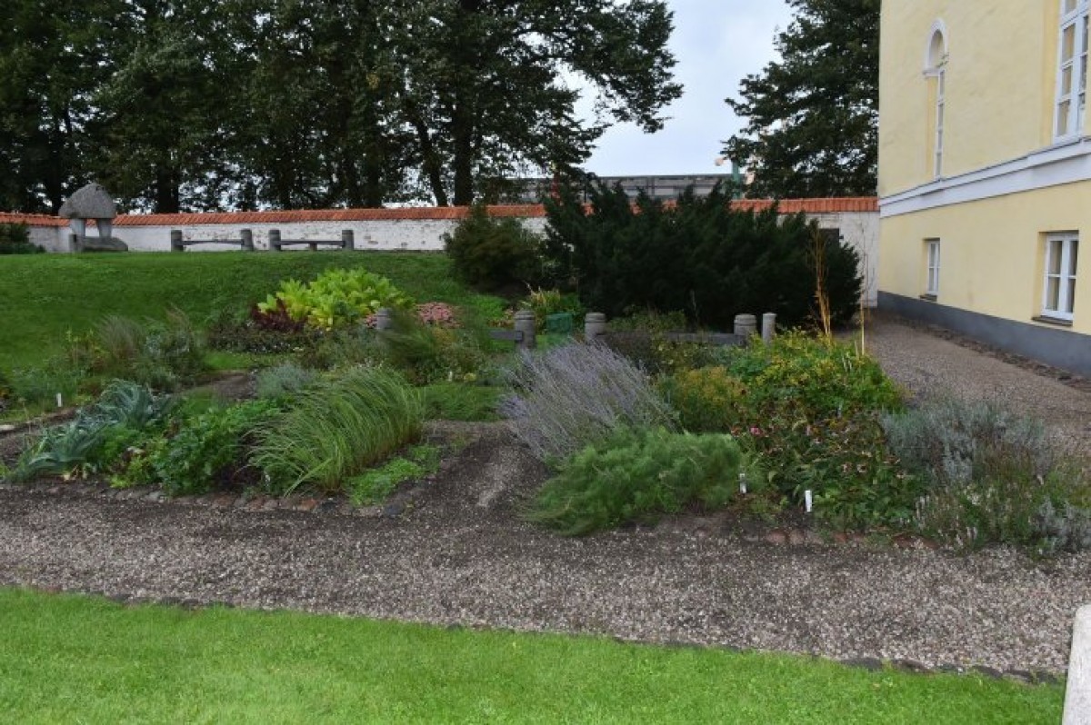 Растения в саду замка не были выбраны случайно - во дворе с 2002 года оборудован сад приправ, который последние восемь лет ежегодно пополняется различными растениями, к которым присоединены пластинки с названиями и описанием, указали в музее.