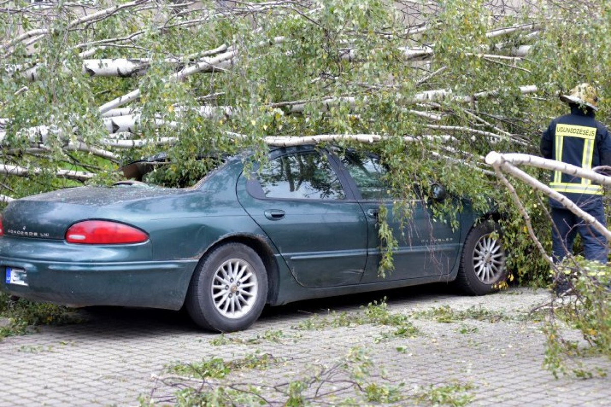 В 14:30 был получен вызов на просп. Лиелайс в Вентспилсе, где ветром на машину повалило дерево. Пожарные спасатели освободили автомобиль, распилили дерево и привели в порядок проезжую часть. В 14:45 вся работа была завершена.