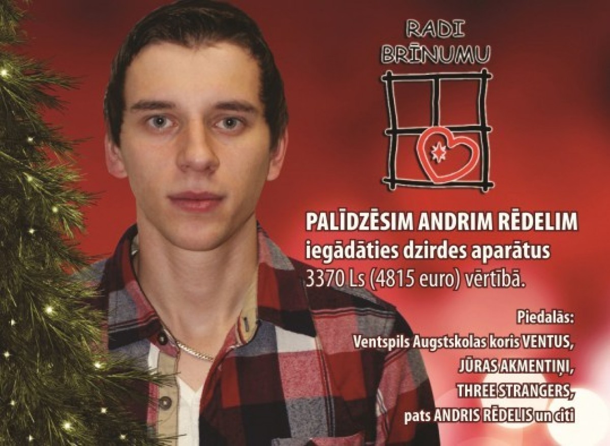 Сегодня в 18:00 в замке Ливонского ордена состоится благотворительный концерт Сотвори чудо, цель которого — поддержать Андриса Ределиса, у которого из-за осложнений, вызванных гриппом, появились проблемы со слухом.