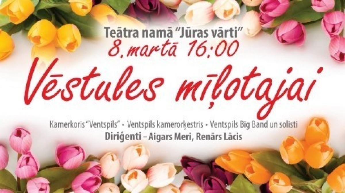 Театральный дом «Юрас варты» приглашает вентспилсских представительниц прекрасного пола 8 марта на особый праздничный концерт, который является первым совместным проектом камерного хора «Вентспилс», вентспилсского камерного оркестра и группы «Вентспилсский биг-бэнд». Начало концерта – в 16:00.
