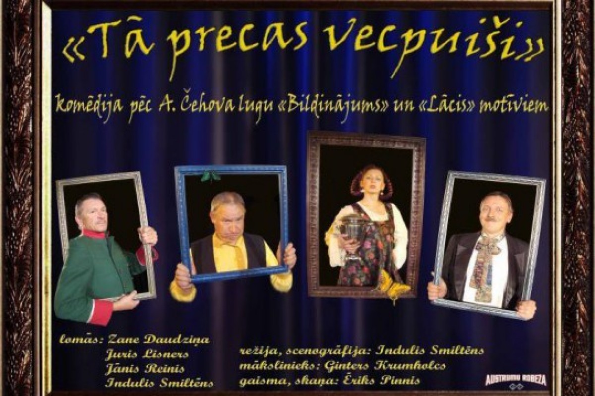 Сегодня в 19.00 в Центре культуры покажут одноактную комедию по мотивам Предложения и Медведя Антона Чехова Tā precas vecpuiši…
