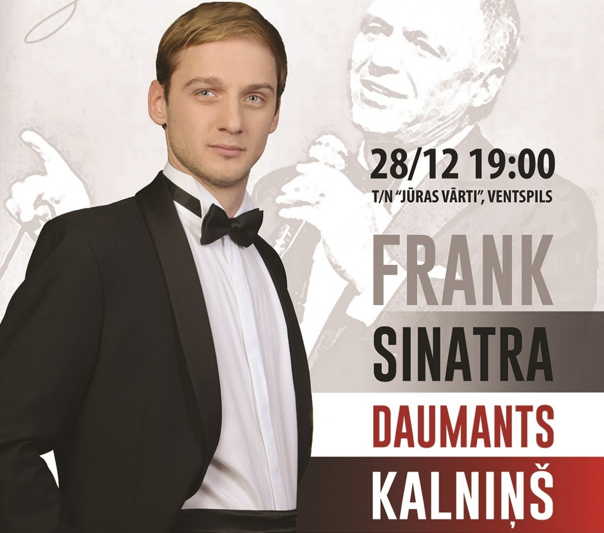 В среду, 28-го декабря в 19:00 в т/д Юрас варты песни из репертуара легендарного певца Фрэнка Синатры исполнит Даумант Калныньш и Елгавский биг-бенд под руководством Райтиса Ашманиса.