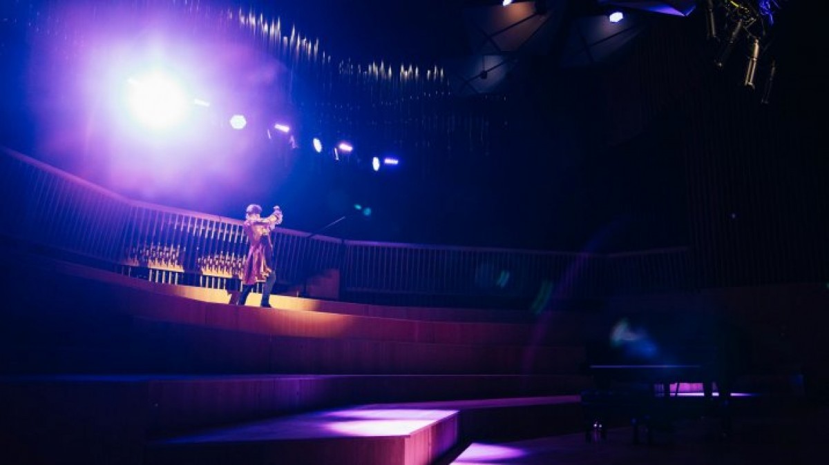В то же время звуковые рефлекторы и трековые светильники под потолком подключаются к мониторам и приводятся в действие с помощью сценической машинерии.
