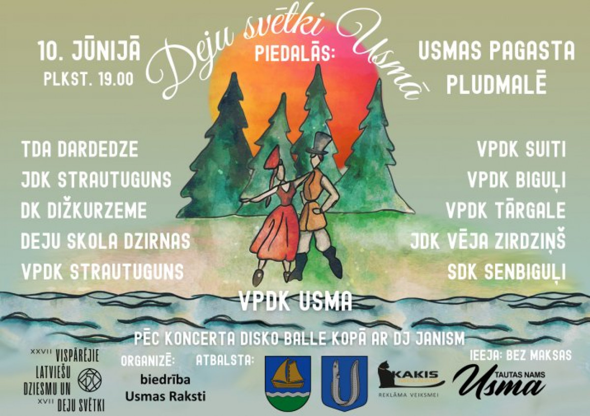 «Праздник танца в Усме пройдет впервые в истории волости – на пляже соберутся 230 танцоров из всех танцевальных коллективов. На сцену выйдут участники одиннадцати танцевальных коллективов. 150-летие Вселатвийского праздника песни и танца отметят танцевальный коллектив среднего поколения «Усма», все задействованные коллективы, а также народный дома «Усма». Стоит также добавить, что в этом году, во второй раз в истории отреставрированного народного дома «Усма» наш танцевальный коллектив отправится в Ригу, чтобы вместе исполнить танцевальные номера с танцорами со всей Латвии! Мы настолько сильны, насколько сильны наши традиции и ценности».