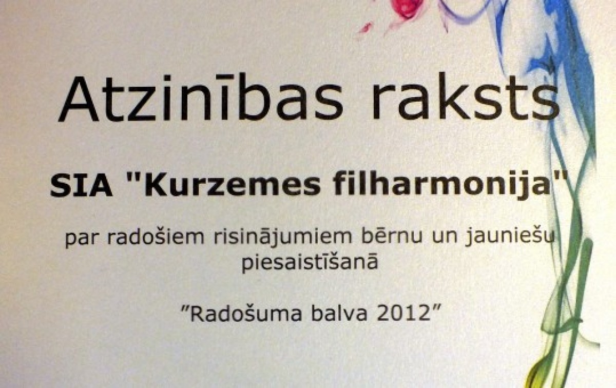 ОООС Курземес филармония в последние три года особенно активно старается привлечь внимание детей и молодежи к культурным мероприятиям. На получение приза было подано три прошлогодних проекта.