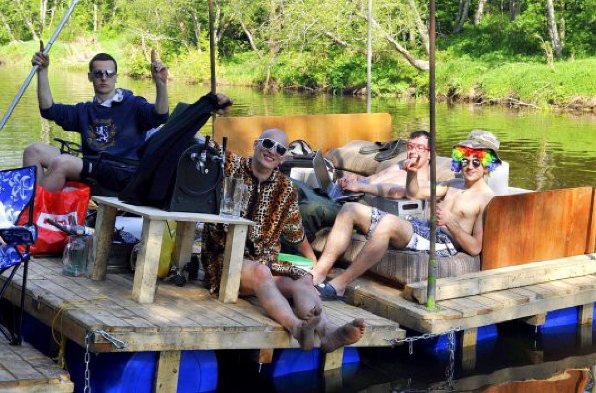Уникальный проект подготовили трое бывших студентов факультета ИТ Вентспилсского ВУЗа – Улдис Пирагс, Янис Генгерис и Айвис Креслиньш, чтобы участвовать в сплаве на лодках, организованном вузом. «Идея о создании плота родилась примерно за три месяца до сплава – мы болтали в Скайпе и думали, чем бы нам выделиться», – рассказывают создатели плота.