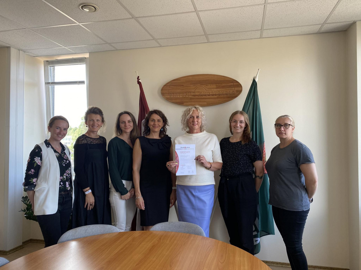 28 июля Вентспилсская высшая школа получила сертификат «Вуз добросовестной практики», врученный руководителем Study in Latvia Синтией Шмите-Тилика. Сертификат удостоверяет соблюдение надлежащей практики в привлечении иностранных студентов и их обучении.
