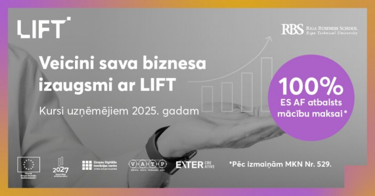 LIFT — это инициатива, софинансируемая Фондом восстановления ЕС, реализуемая Рижской школой бизнеса РТУ в сотрудничестве с Латвийским ИТ-кластером.